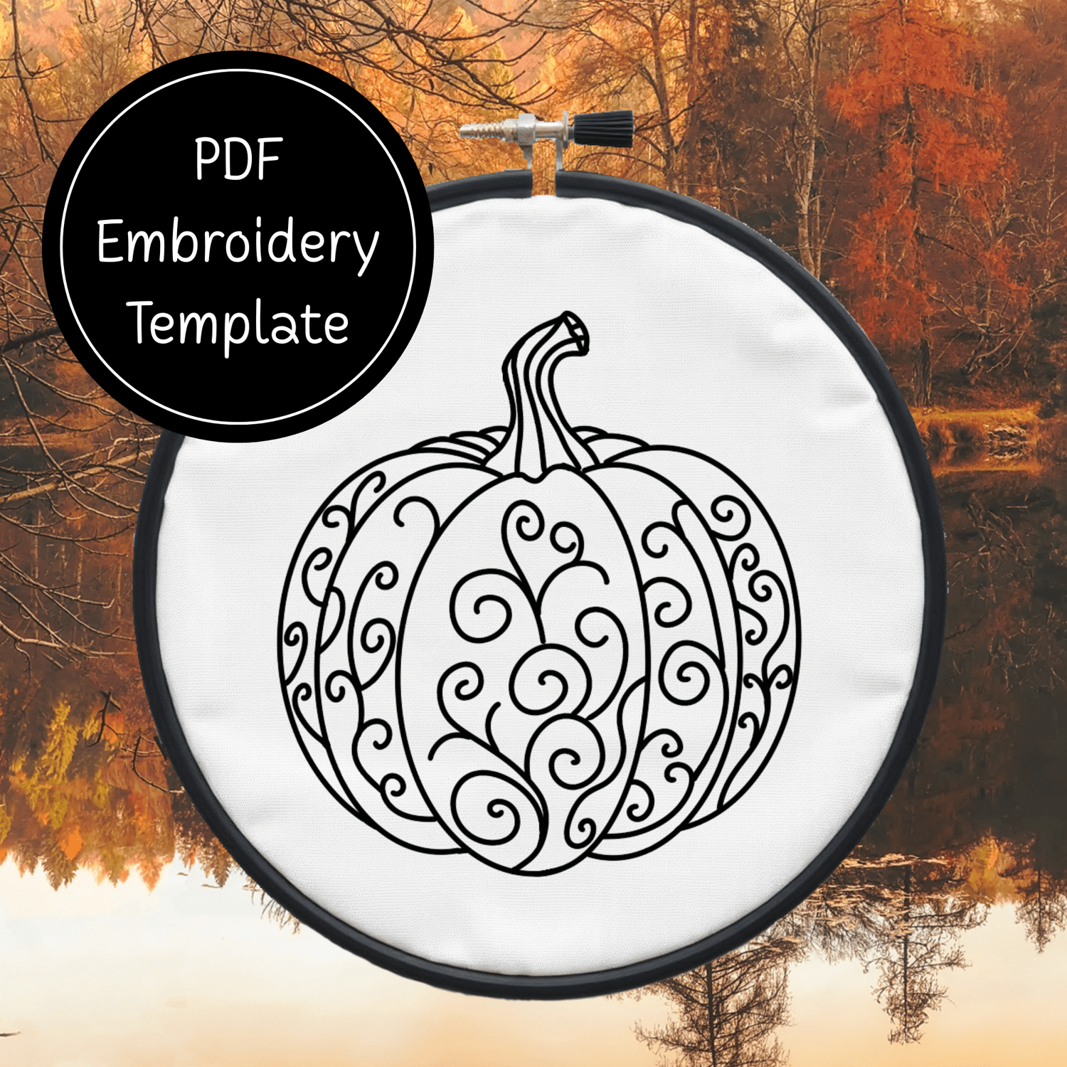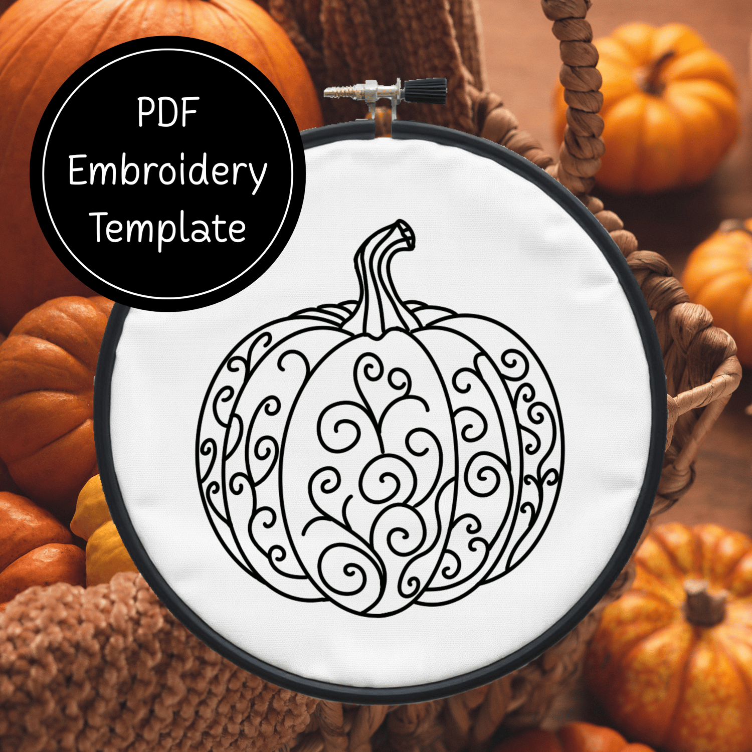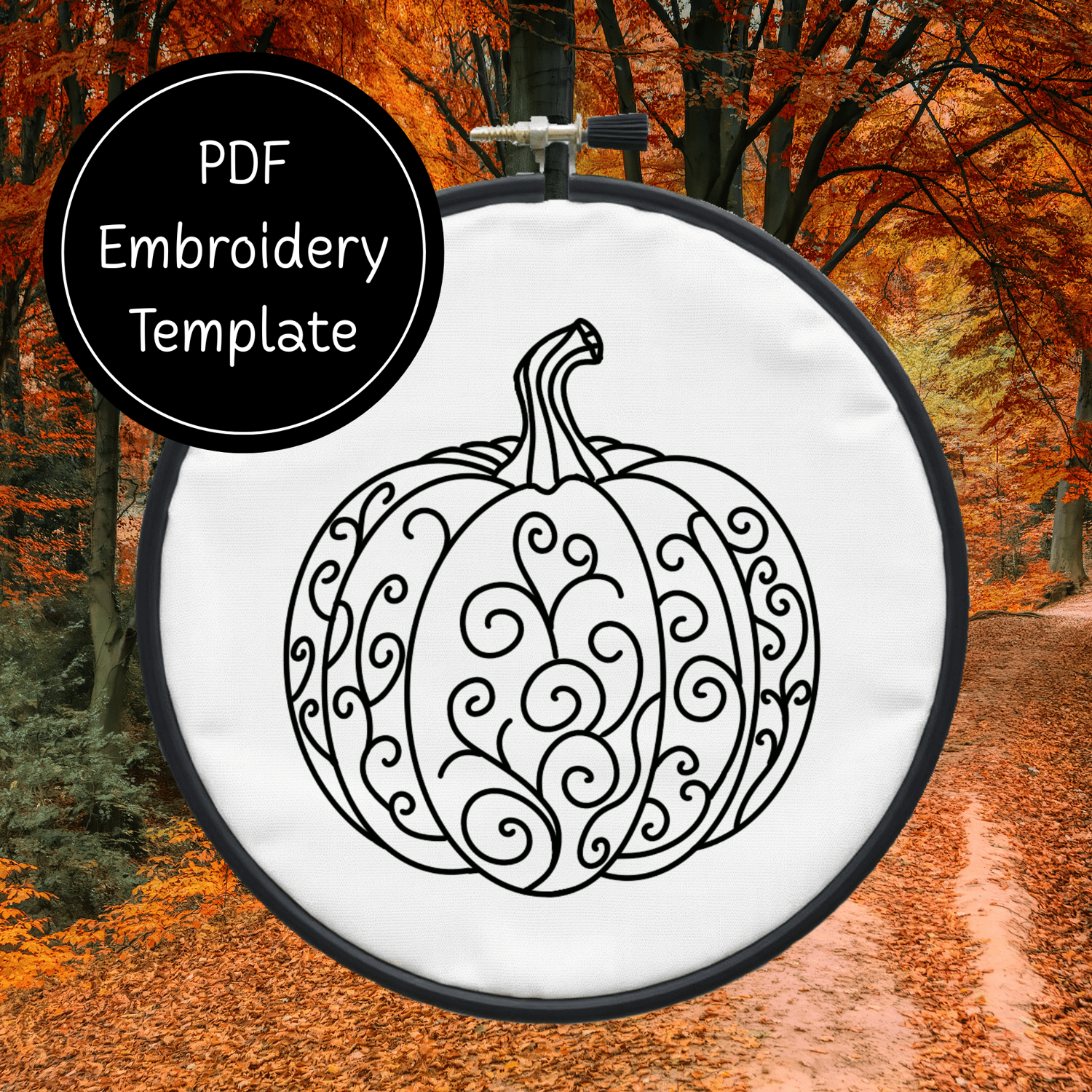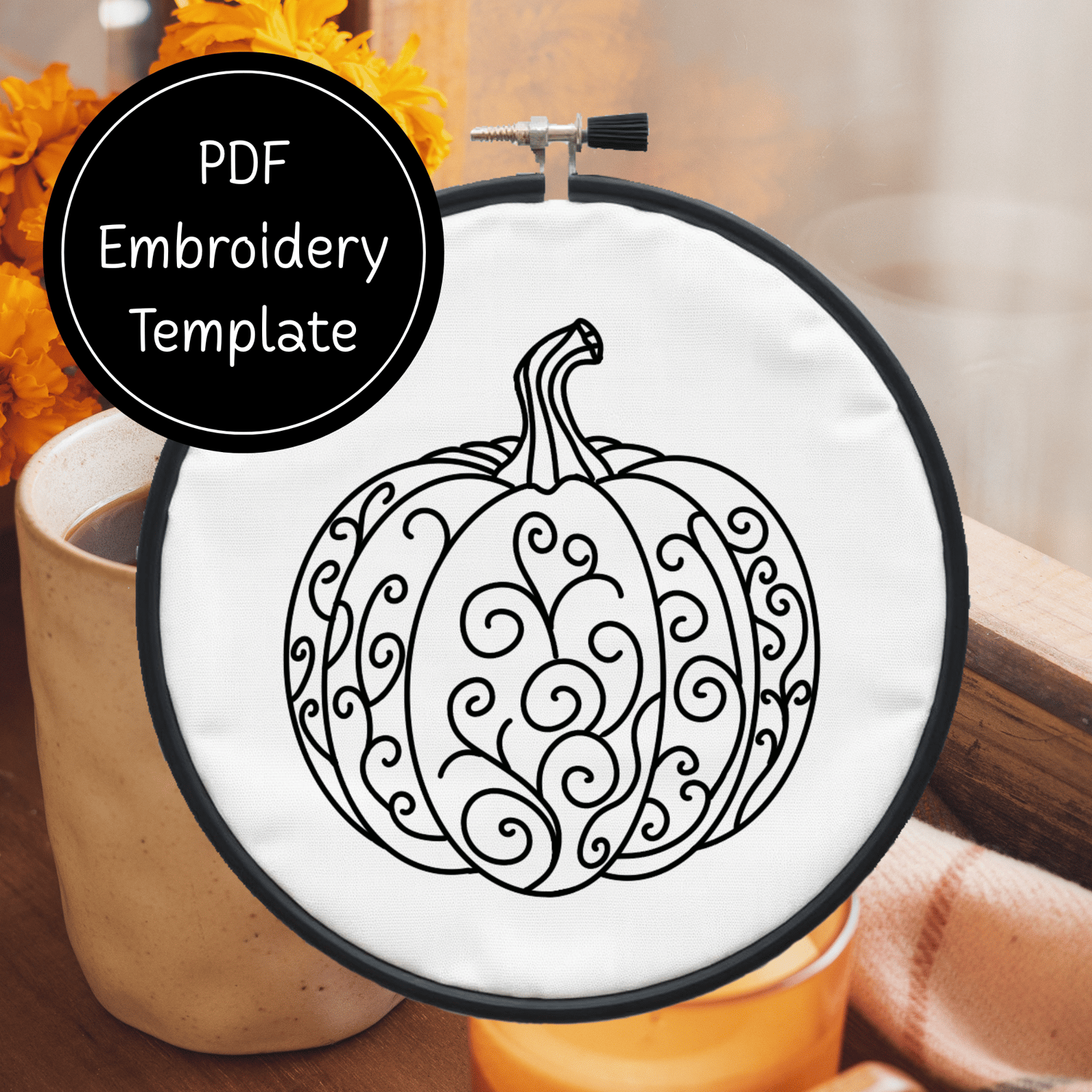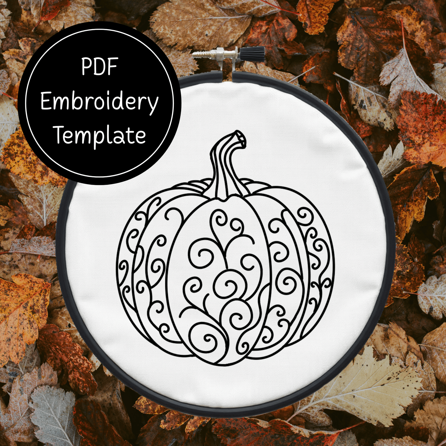 Filigree Pumpkin Hand Embroidery Pattern DIY Fall Design For Hand Stitching - Instant Download