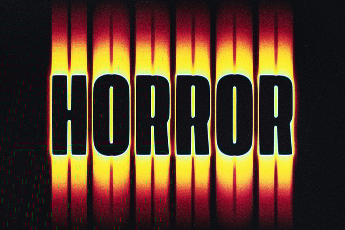 Bold, electrifying visual style with a dramatic neon-glow distortion. Presented in solid black, but each letter is surrounded by an intense gradient aura that shifts from bright yellow to deep purple.