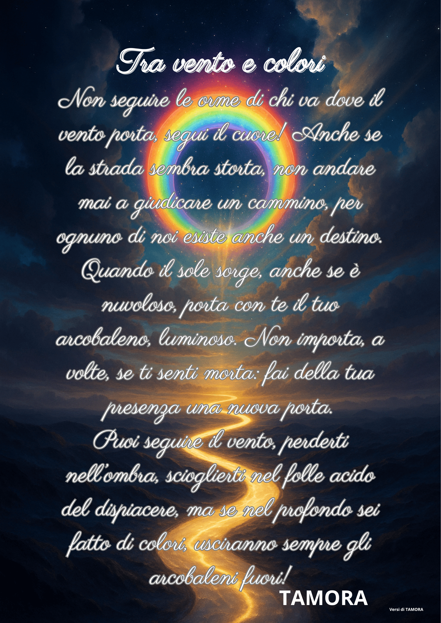🖋 Testo incluso sul poster: “Non seguire le orme di chi va dove il vento porta, segui il cuore… usciran sempre gli arcobaleni fuori!”