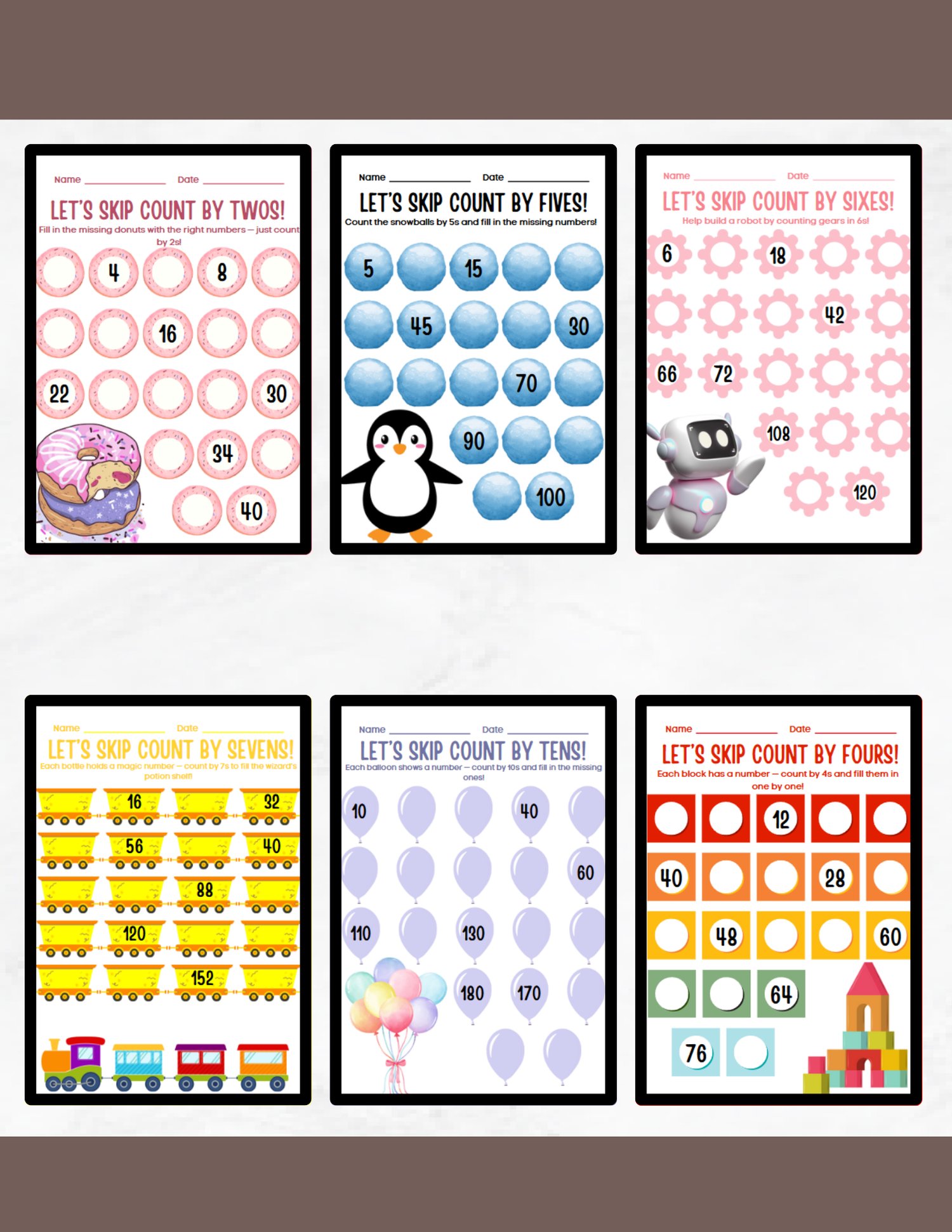 - 20 skip counting themes for 2s to 10s — two creative, kid-friendly designs for each number!