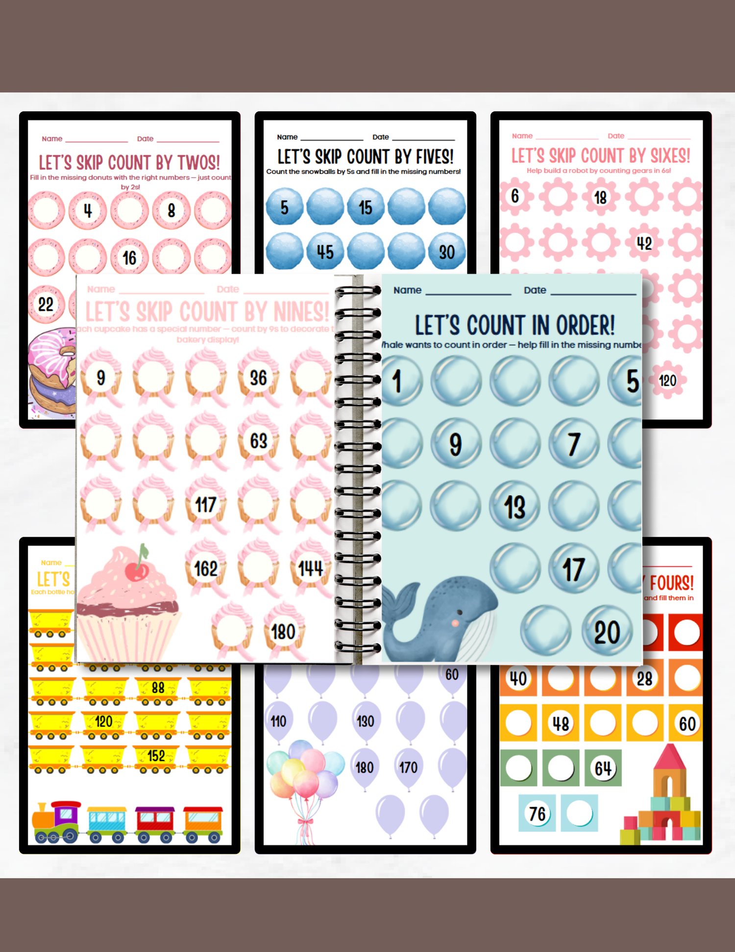 This printable activity pack is perfect for preschoolers and early learners who are building confidence in counting from 1 to 20 and learning skip counting from 2 to 10! With colorful visuals and engaging themes, kids stay excited while developing number recognition, sequencing skills, and early math fluency.