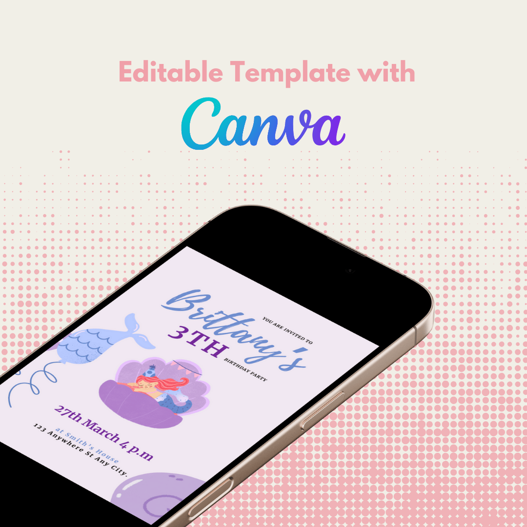 Simple Cute Mermaid Sleeping Birthday Party Card Invitation Canva Template Design
