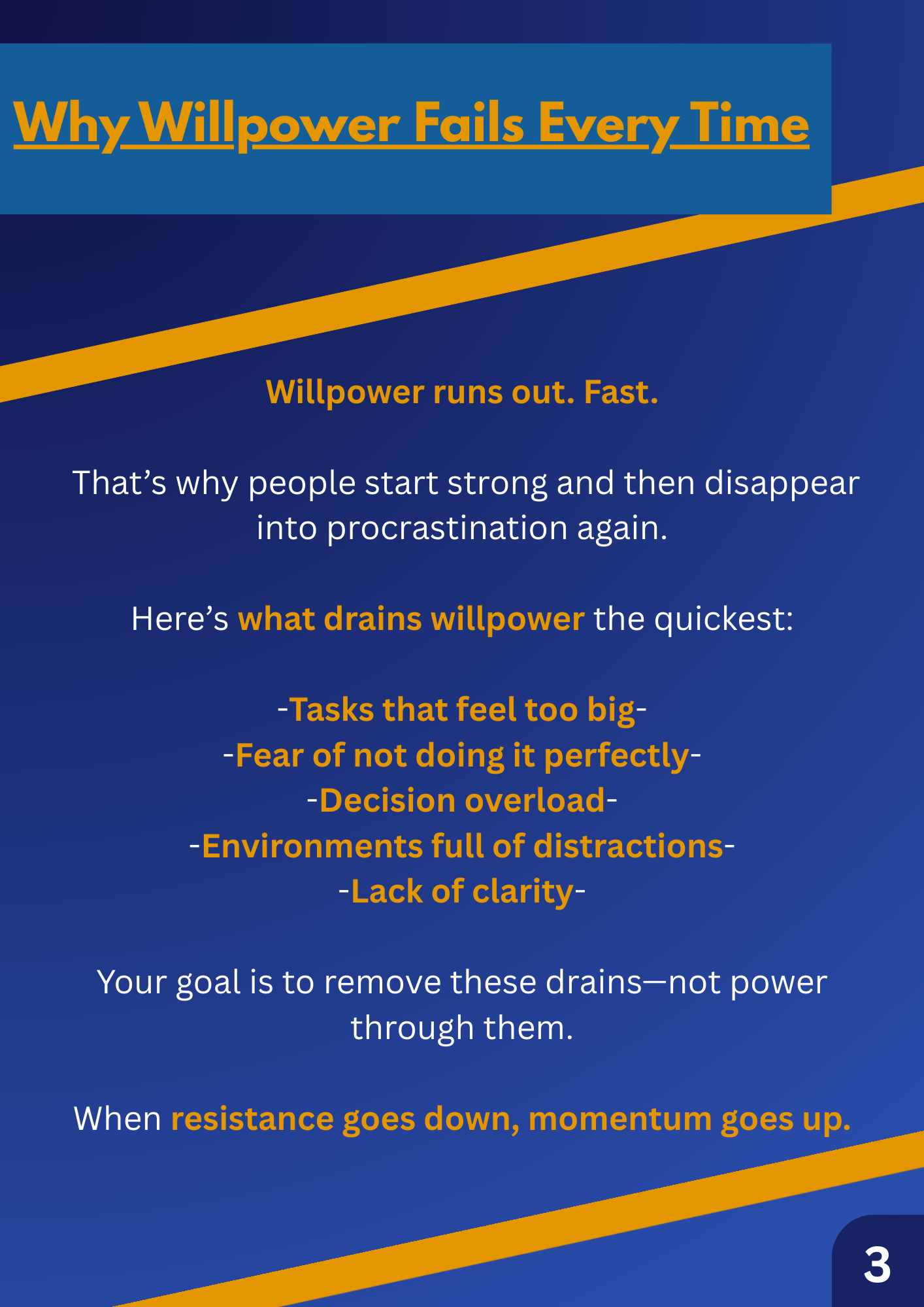 The Momentum Blueprint teaches you how to break the procrastination cycle without using willpower, pressure, or discipline hacks that never last.