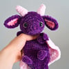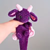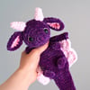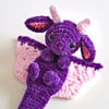 Yumi’s Night Guardian is a dragon ragdoll snuggler designed with plush yarn! This doll features a flat, floppy body and is the perfect size for little ones to snuggle and cuddle. This soft and velvety stuffed animal will turn into your child’s favorite emotional support amigurumi. Make it as an heirloom birthday gift, for a baby shower gift, Christmas holiday present, or as a craft fair / market prep product. This pattern works up well with chenille velvet or blanket yarn.