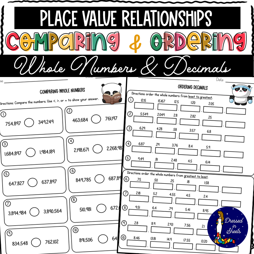 4th Grade Comparing and Ordering Whole Numbers and Decimals