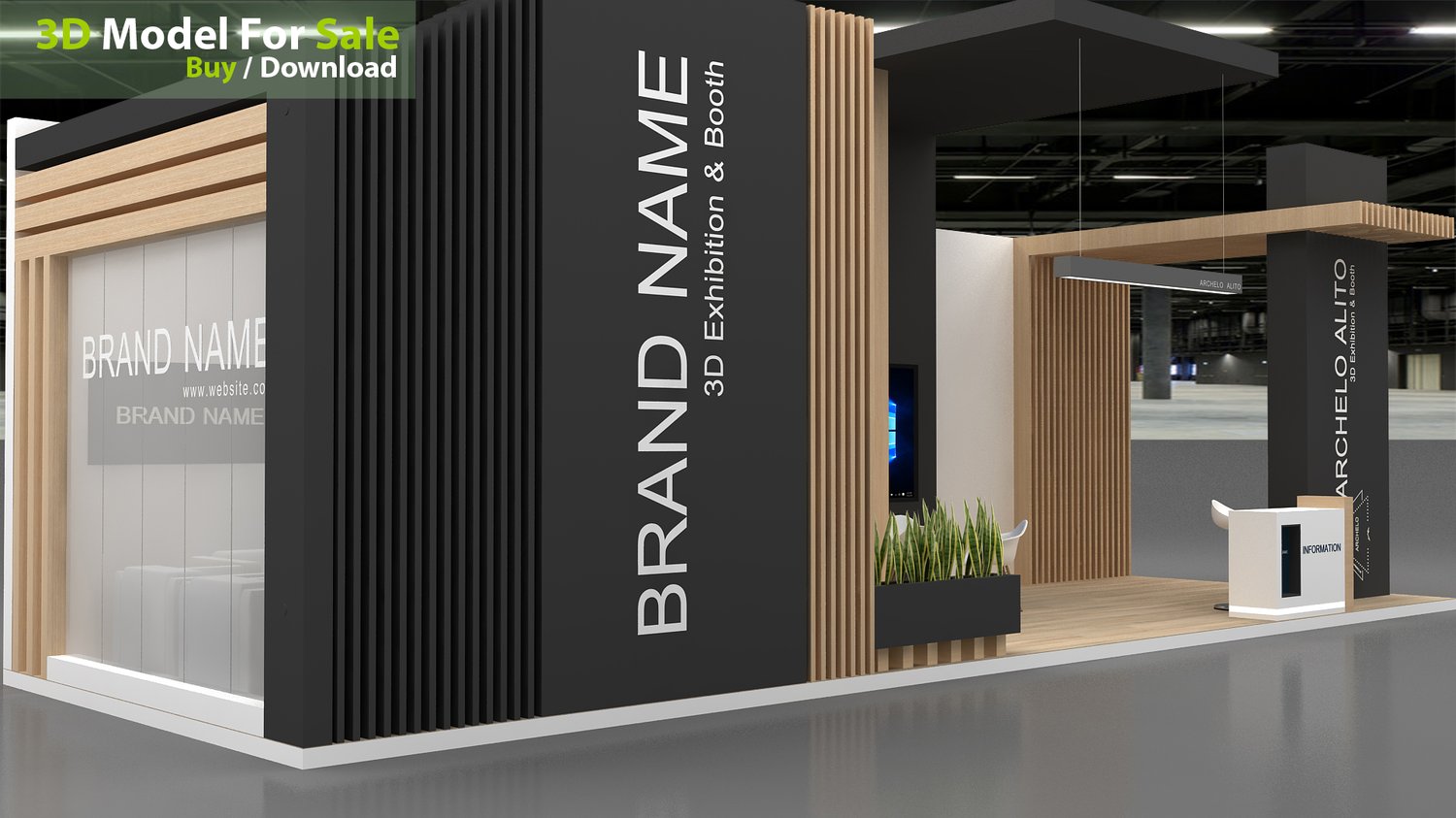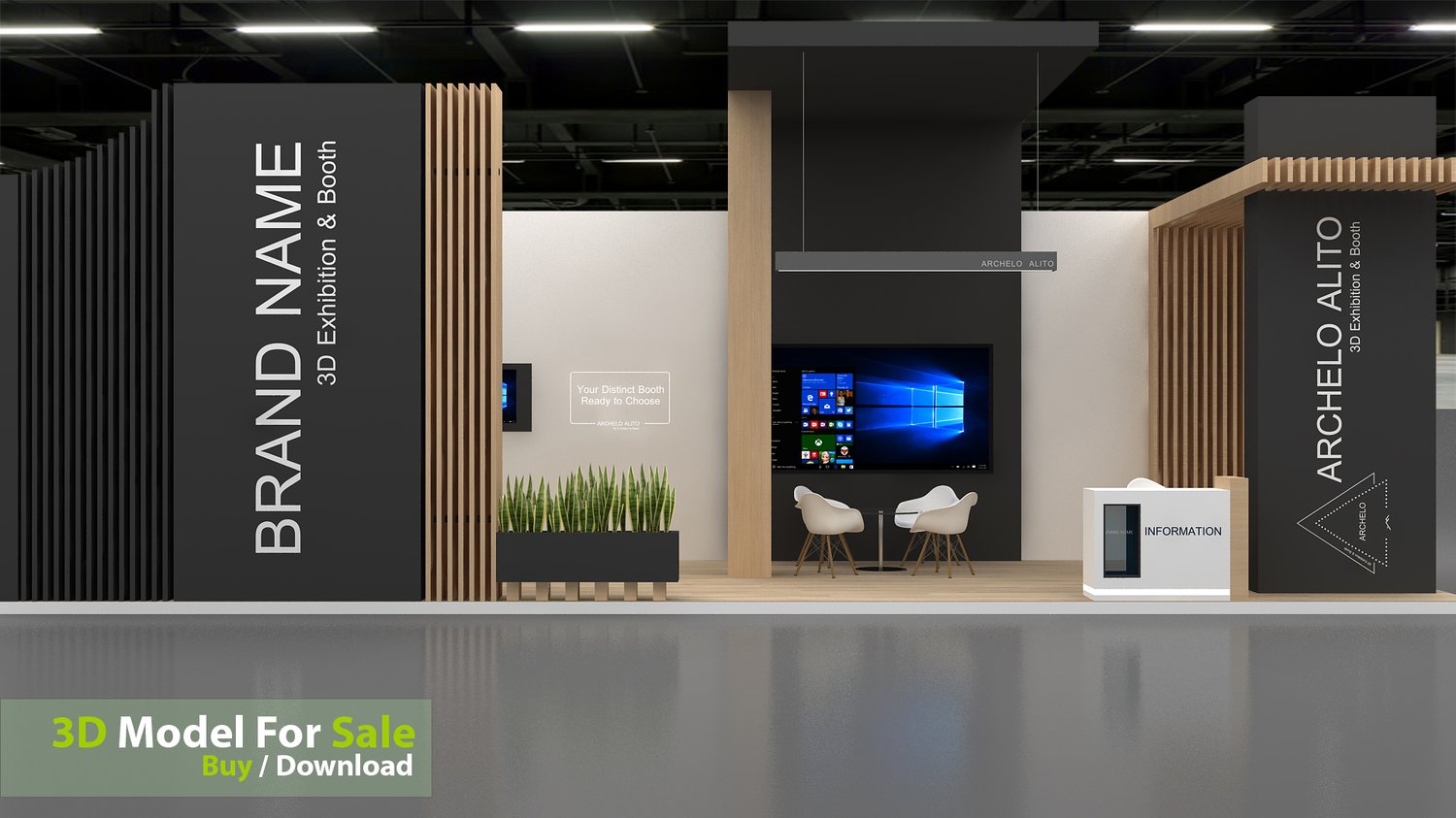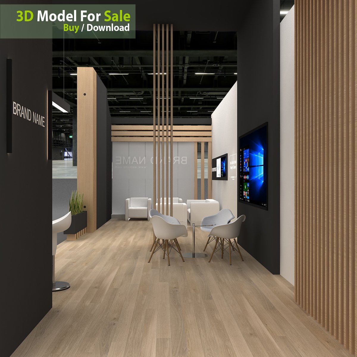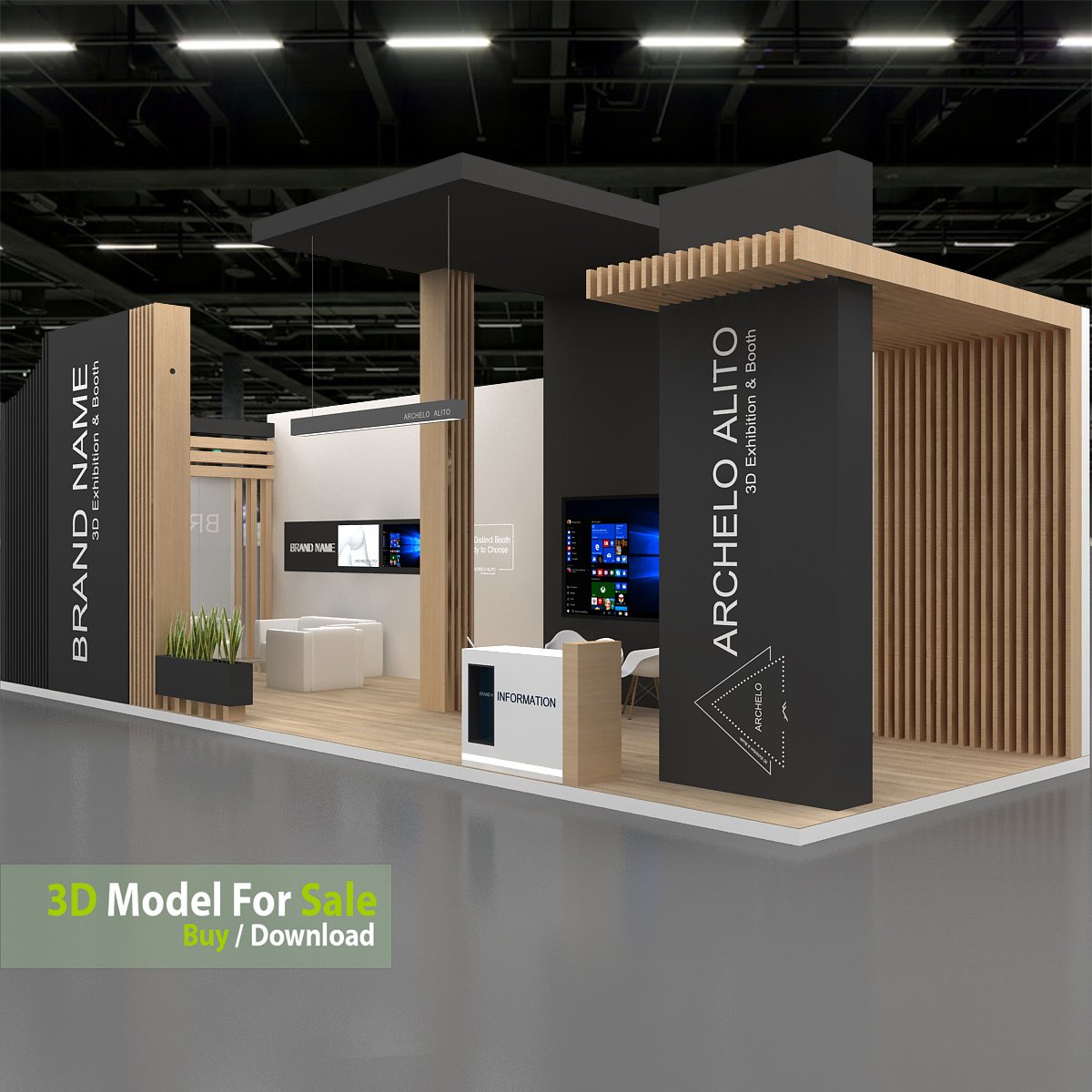 This professional 3D booth model is designed for exhibitions, trade shows, expos, fairs, and event displays.
