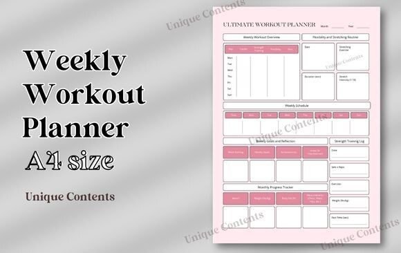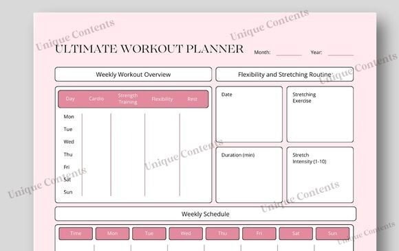 Customizable Sections: The planner includes spaces for cardio, strength training, flexibility exercises, and personal notes, allowing you to tailor your fitness plan to your specific goals.