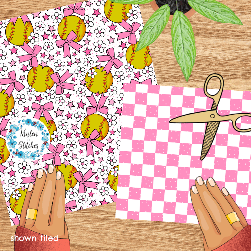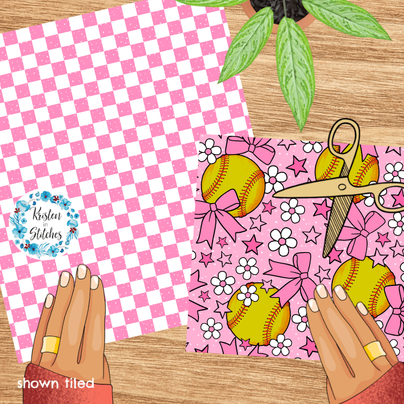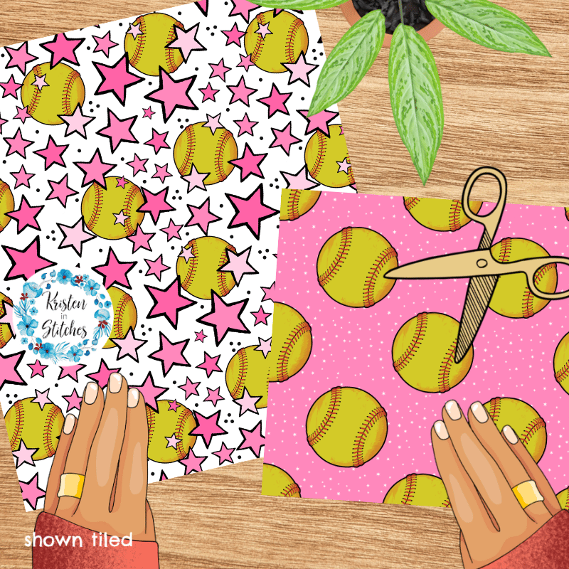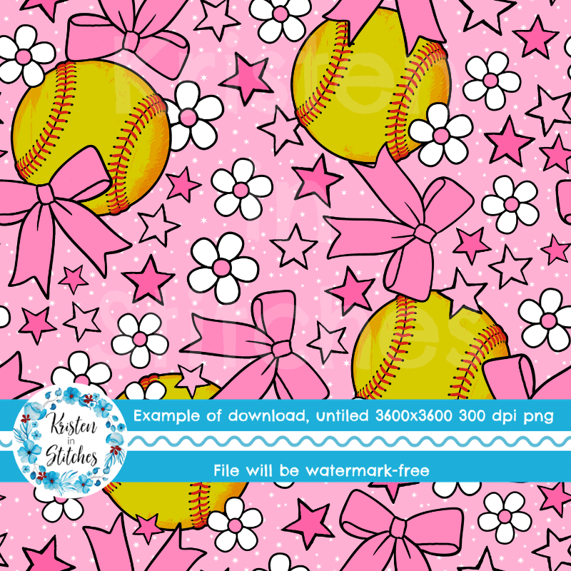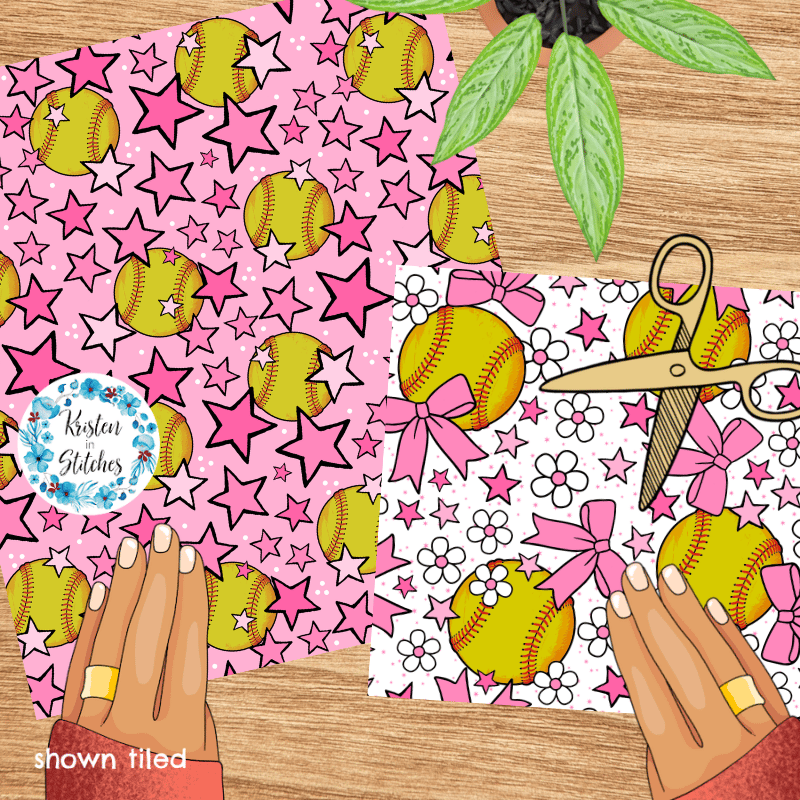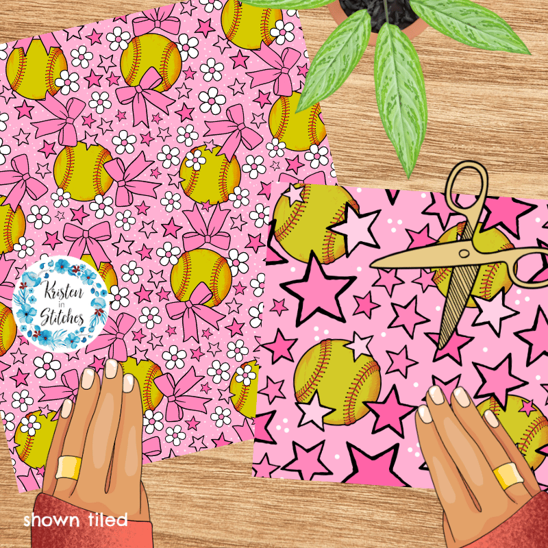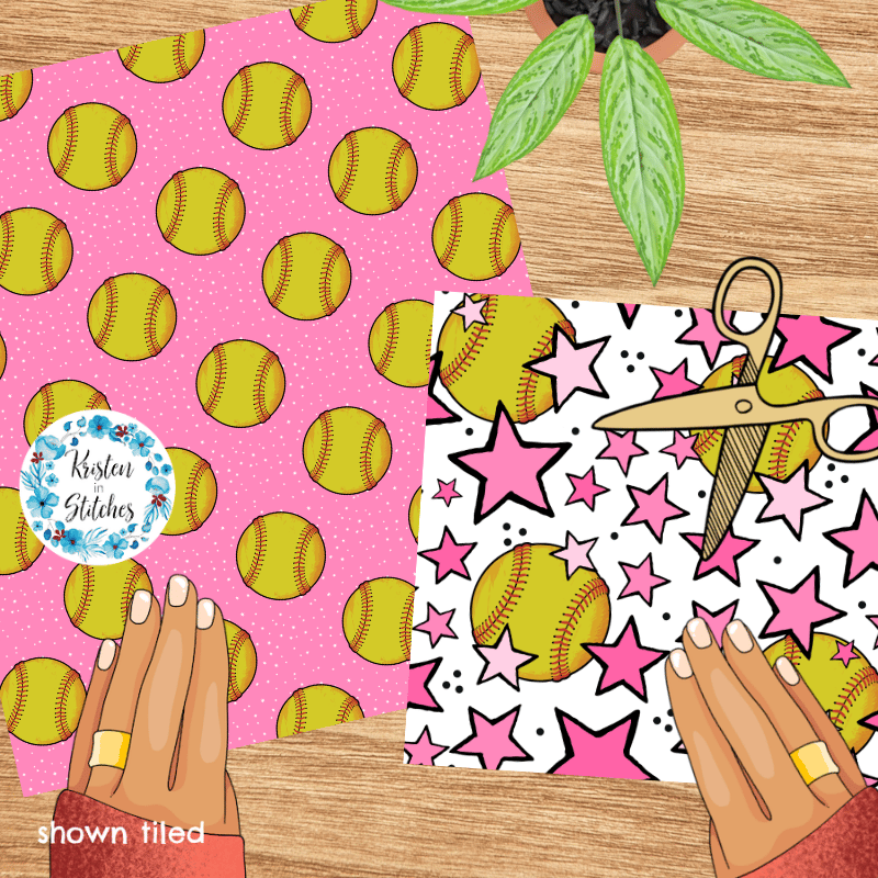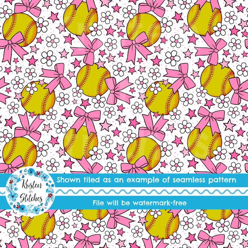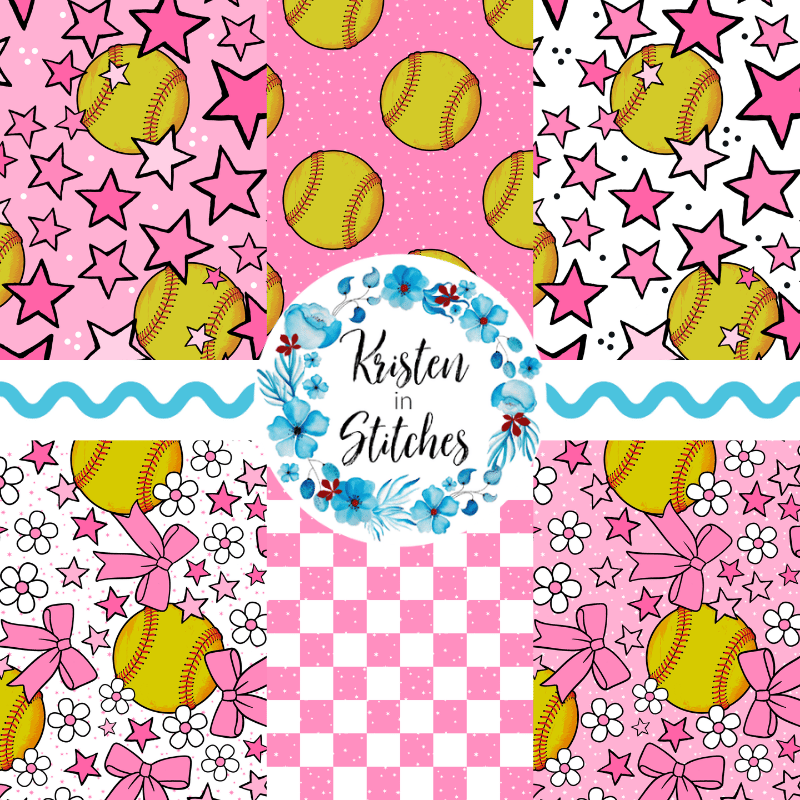 Team Spirit Softball Seamless Pattern Set of 6, Pink