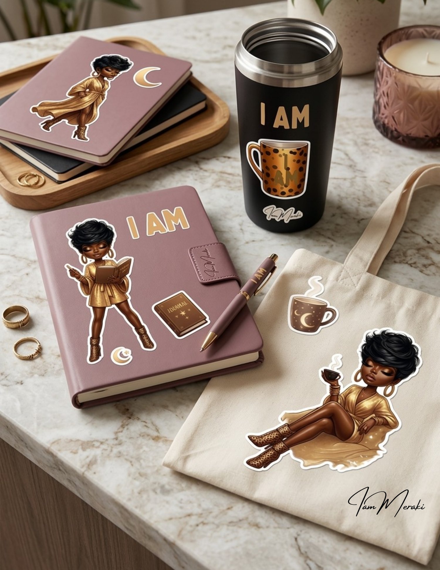 • Versatile Designs: Includes the "I AM" Diva, luxury jewelry , "I Am" mug, and various "I AM" affirmation
