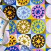 The scrappy version I made with blues, yellows, and a pinkish-purple background is one of my favorites—and a great way to use up your stash. There’s even an alternate layout that flips the scallops for a twist on the design.