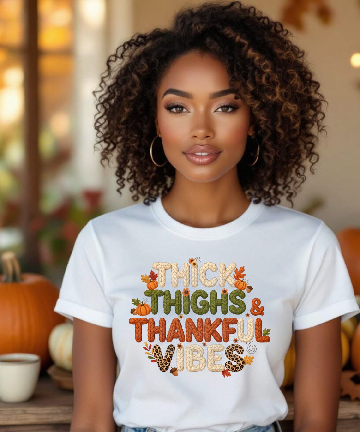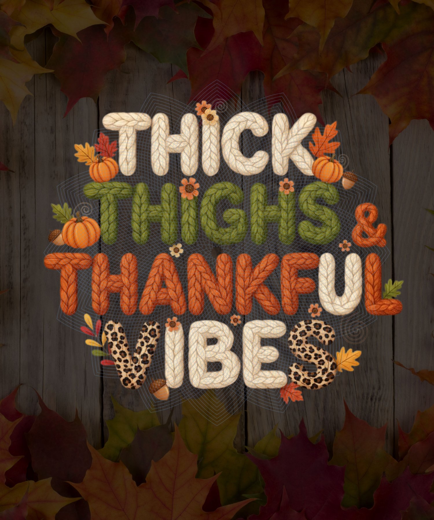 Thick Thighs & Thankful Vibes PNG | Fall Design | Faux Knit Texture | Thanksgiving Shirt Graphic