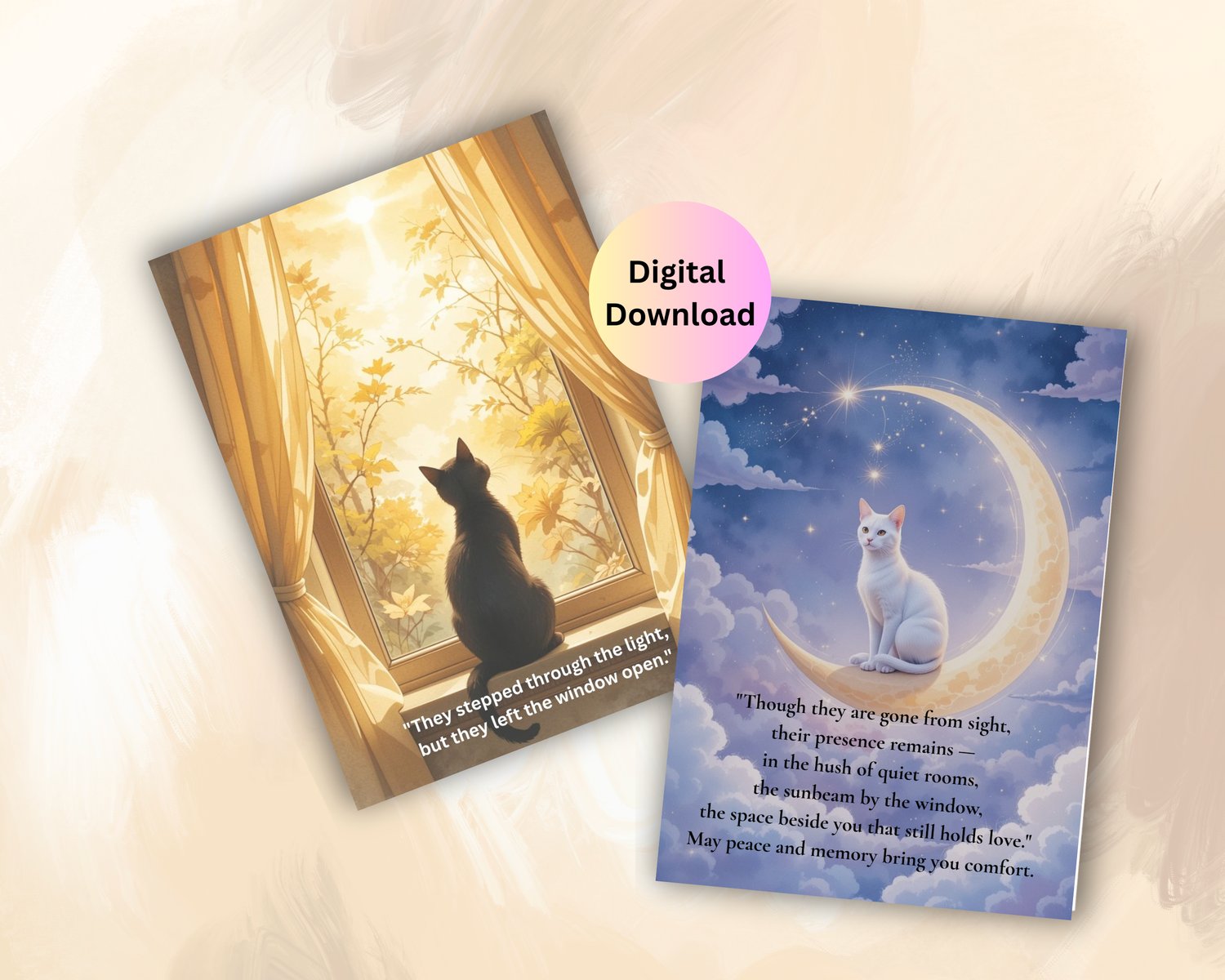 Loss of Cat Sympathy Card Bundle | 2 Printable Designs 4"x6" Digital Download