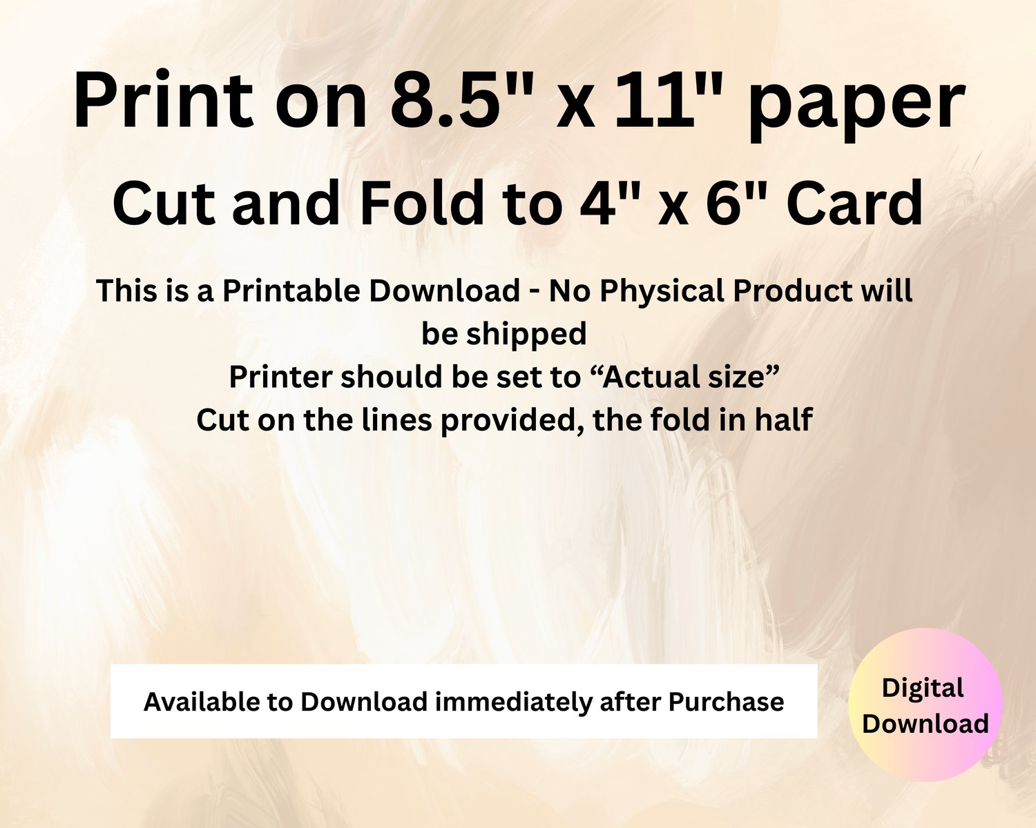 - Each card is 4” x 6” (standard postcard size) for easy home printing.