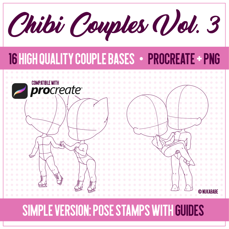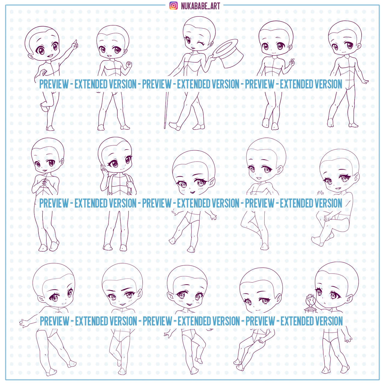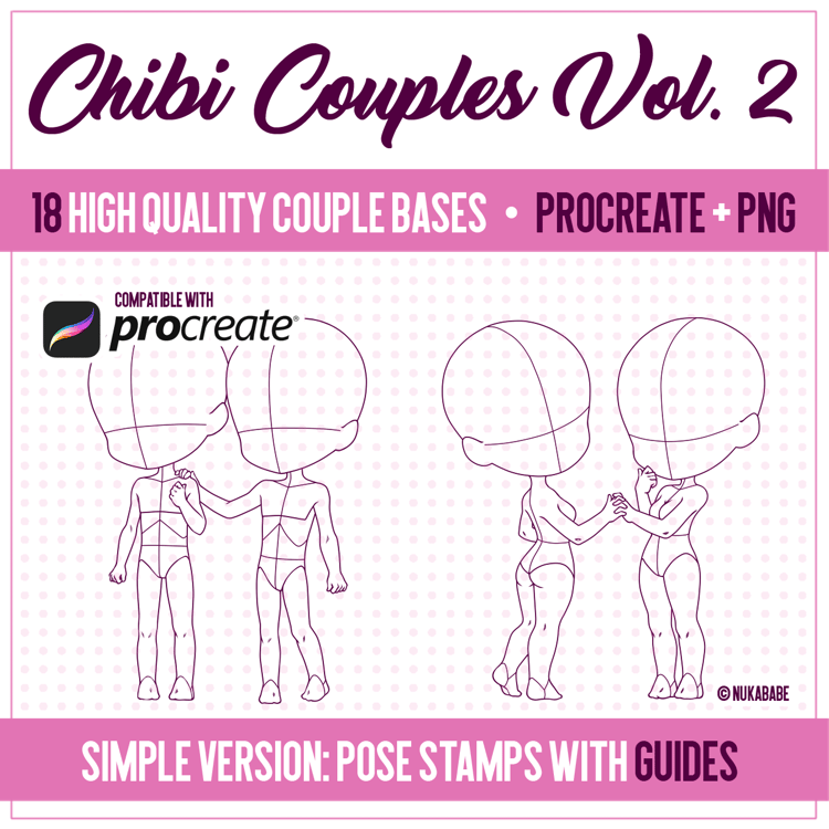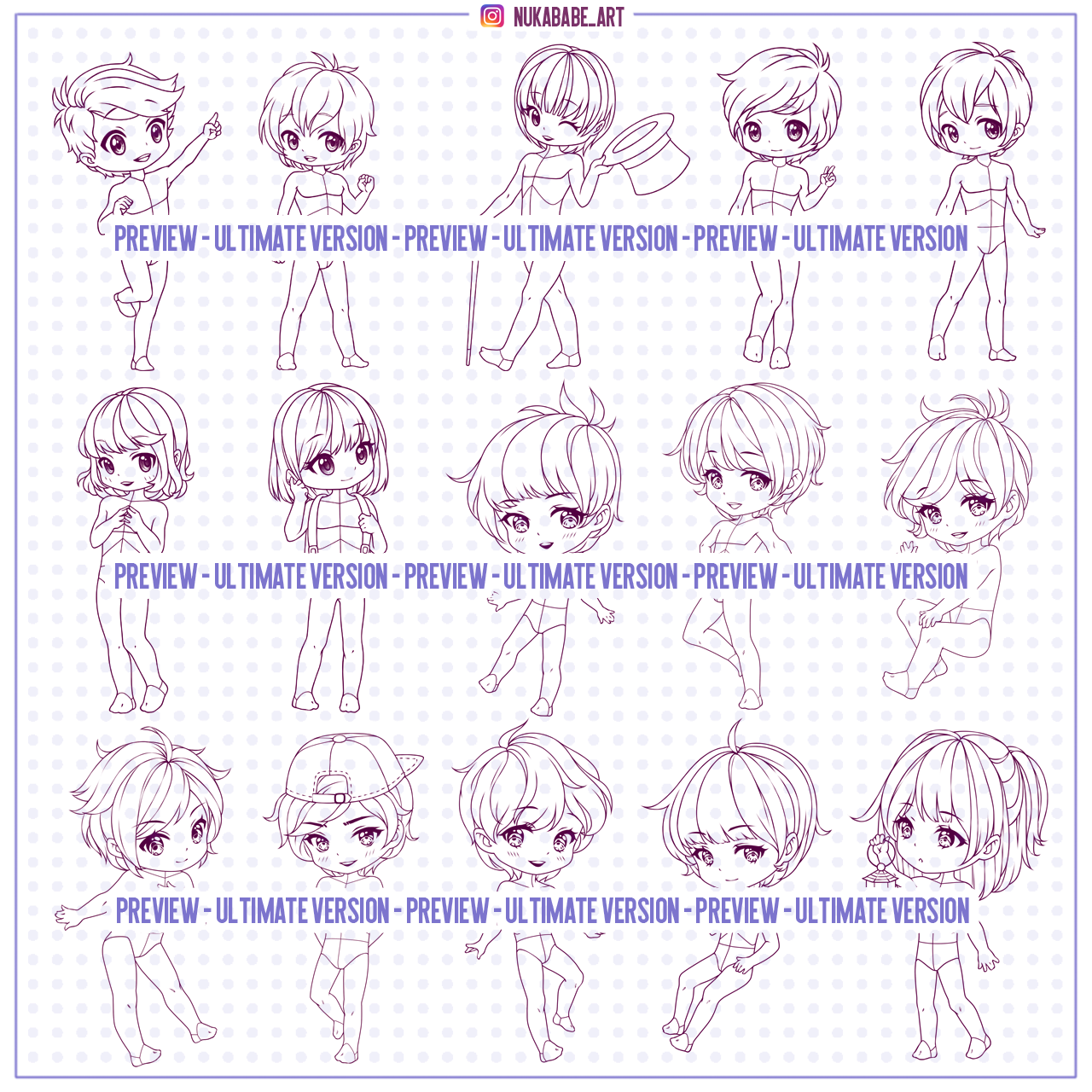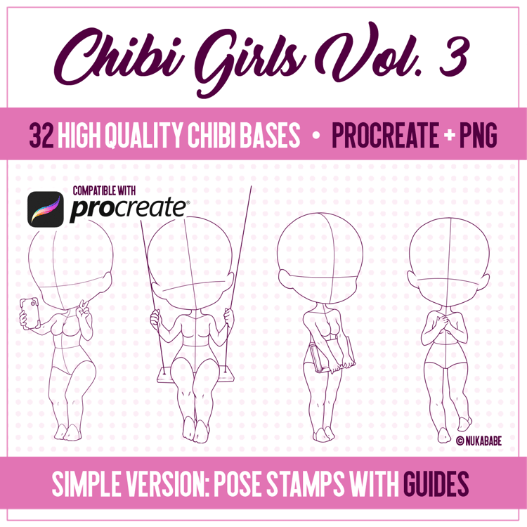 If you are into drawing boys and looking for some fun cartoon stamps for Procreate, you might be in the right place! In this chibi base set, you will find 30 high quality chibi poses with anatomical guides on them. These bases will work great for various types of kawaii and cartoon illustration, particularly for drawing character reference sheets, creating adoptables, and figure drawing practice.