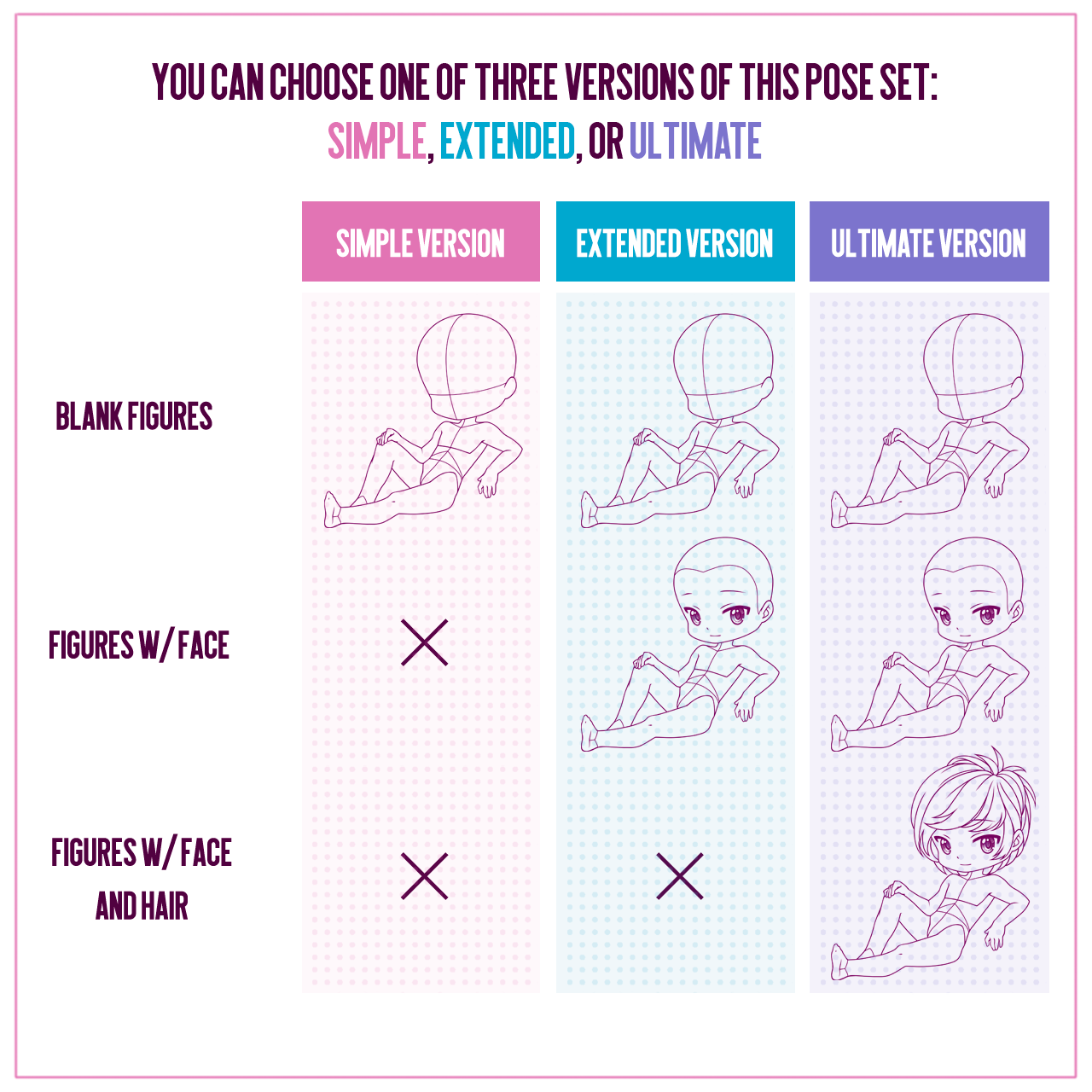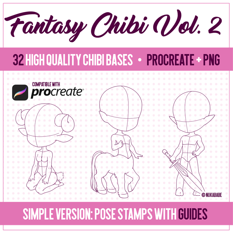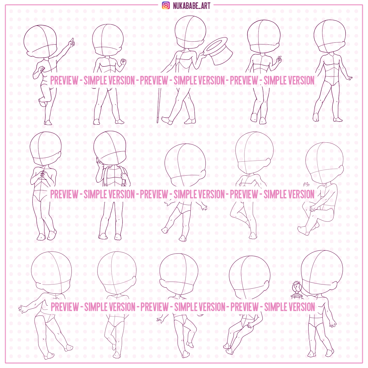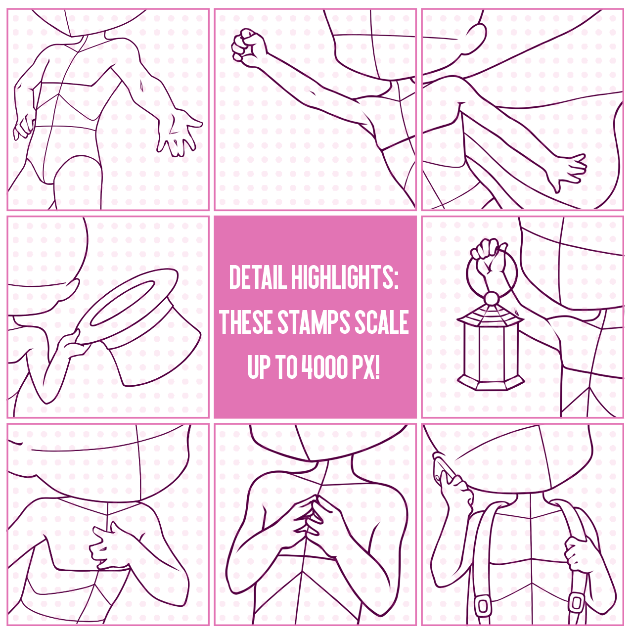 If you are into drawing boys and looking for some fun cartoon stamps for Procreate, you might be in the right place! In this chibi base set, you will find 30 high quality chibi poses with anatomical guides on them. These bases will work great for various types of kawaii and cartoon illustration, particularly for drawing character reference sheets, creating adoptables, and figure drawing practice.