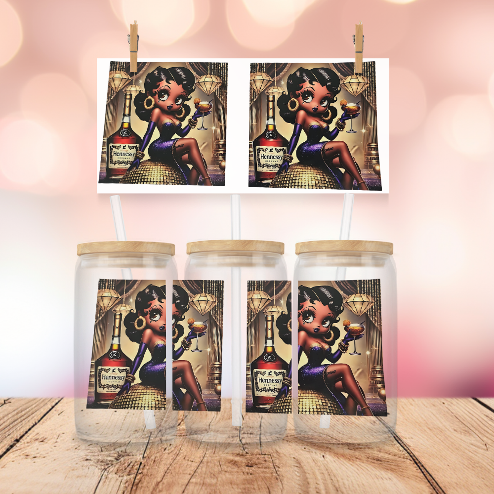 Sip in style with the elegant and confident Classy Miss B Having a Drink Wrap! Designed for 16 oz Libbey glass cans or tumblers, this wrap features Miss B dressed to impress, holding her favorite drink with attitude and grace. It's the perfect design for boss babes, brunch lovers, and glam girls who know how to unwind in style.