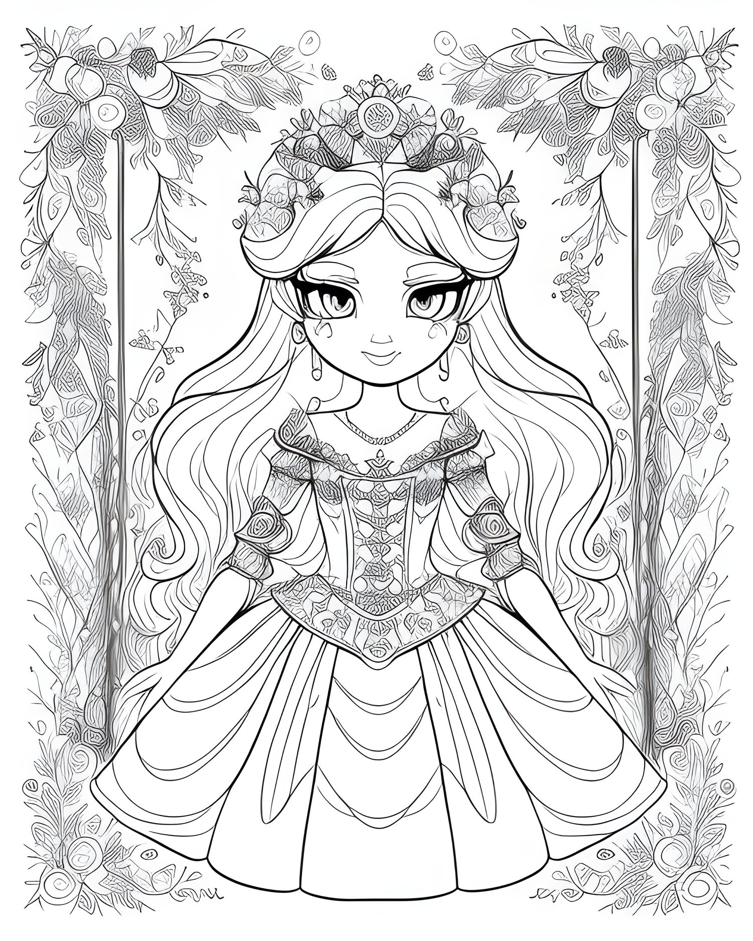 #PrincessColoring #DigitalArt #FantasyIllustration #AdultColoring #WhimsicalArt #FloralDesigns #CreativeHobbies #DetailedLineArt #MagicalPrincesses #FairyTaleInspired