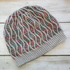 For a two-colour hat: Choose two very contrasting yarns, light vs dark in the same colour or different colours works very well. Avoid using yarns that complement each other because they have colours in common.