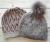 This hat is worked in the round using two stitch cables and slipped stitches. Whilst the pattern is written for the two-colour version, you can just as easily use a single colour, simply ignore the MC and CC instructions! The hat has a lot of stretch and will bounce back, due to the slipped sts in the pattern. If you want to modify the pattern to suit your desired fit, it’s a good idea to read all of the instructions on pages 2 and 3 before you begin. You can adjust both the circumference and brim to crown but bear in mind that adjustments will change yarn requirements.