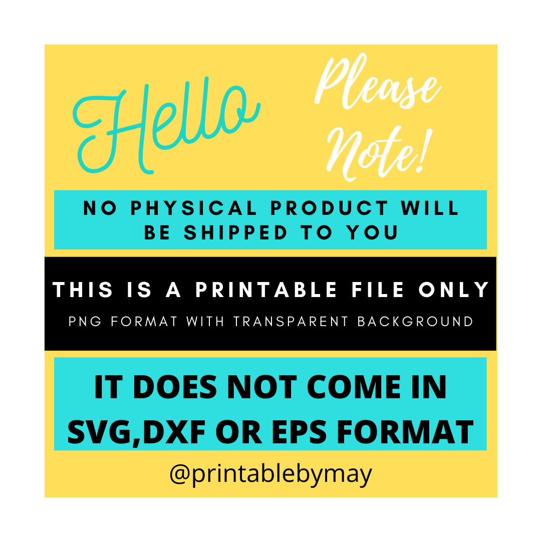 This is digital product and as such, refunds and exchanges are NOT OFFERED in any case! This is a digital file and nothing will be mailed or shipped to your address.
