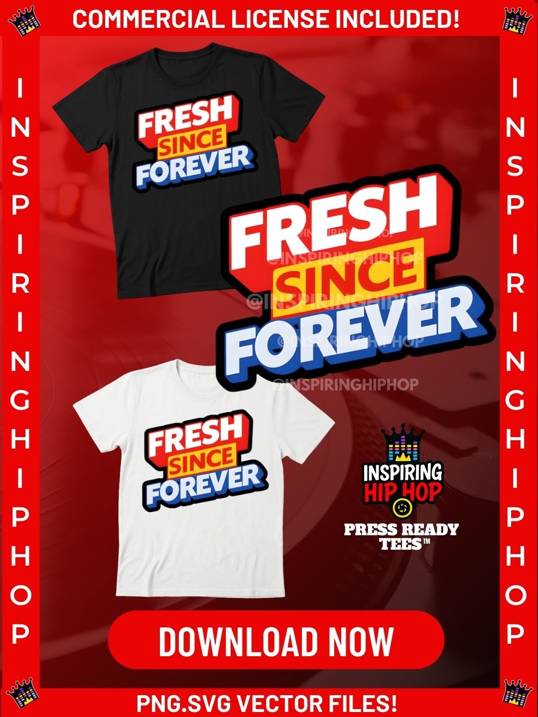 IHH PRESS READY™ – Premade “Fresh Since Forever” Hip Hop Tee Graphic (PNG)