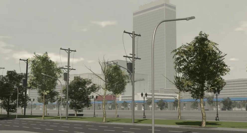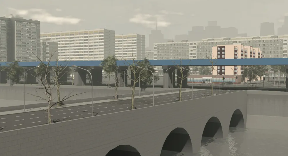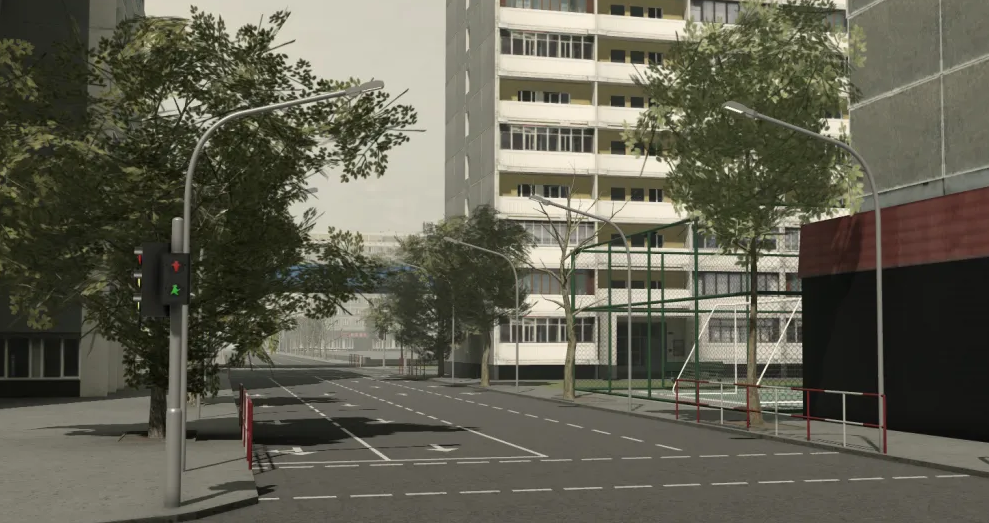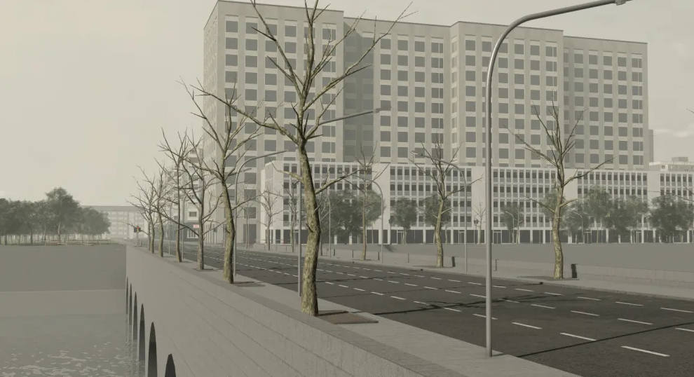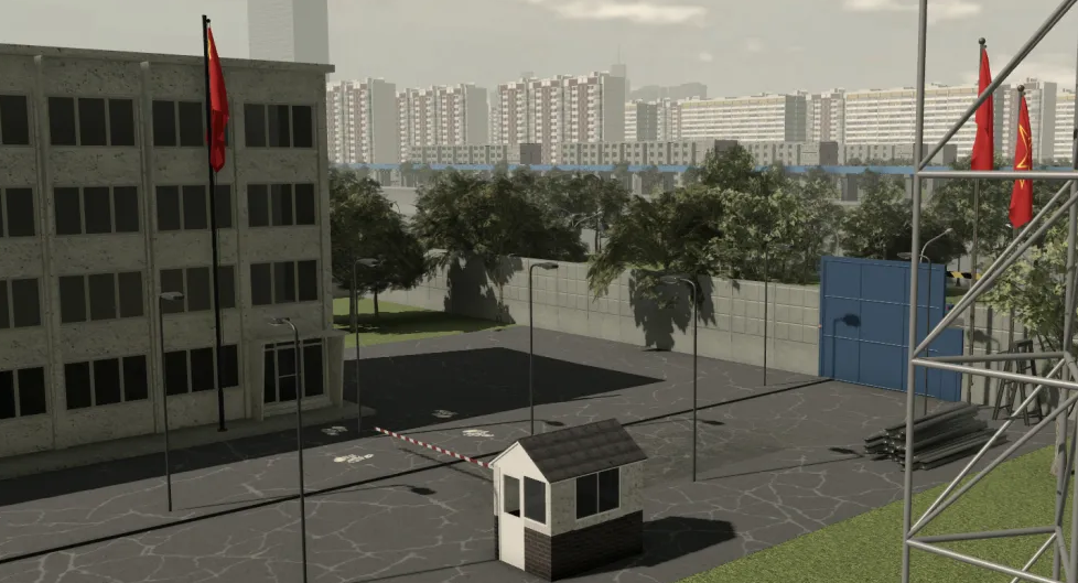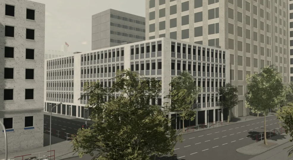 Police headquarters with a detailed interior, while most other buildings focus on exterior design