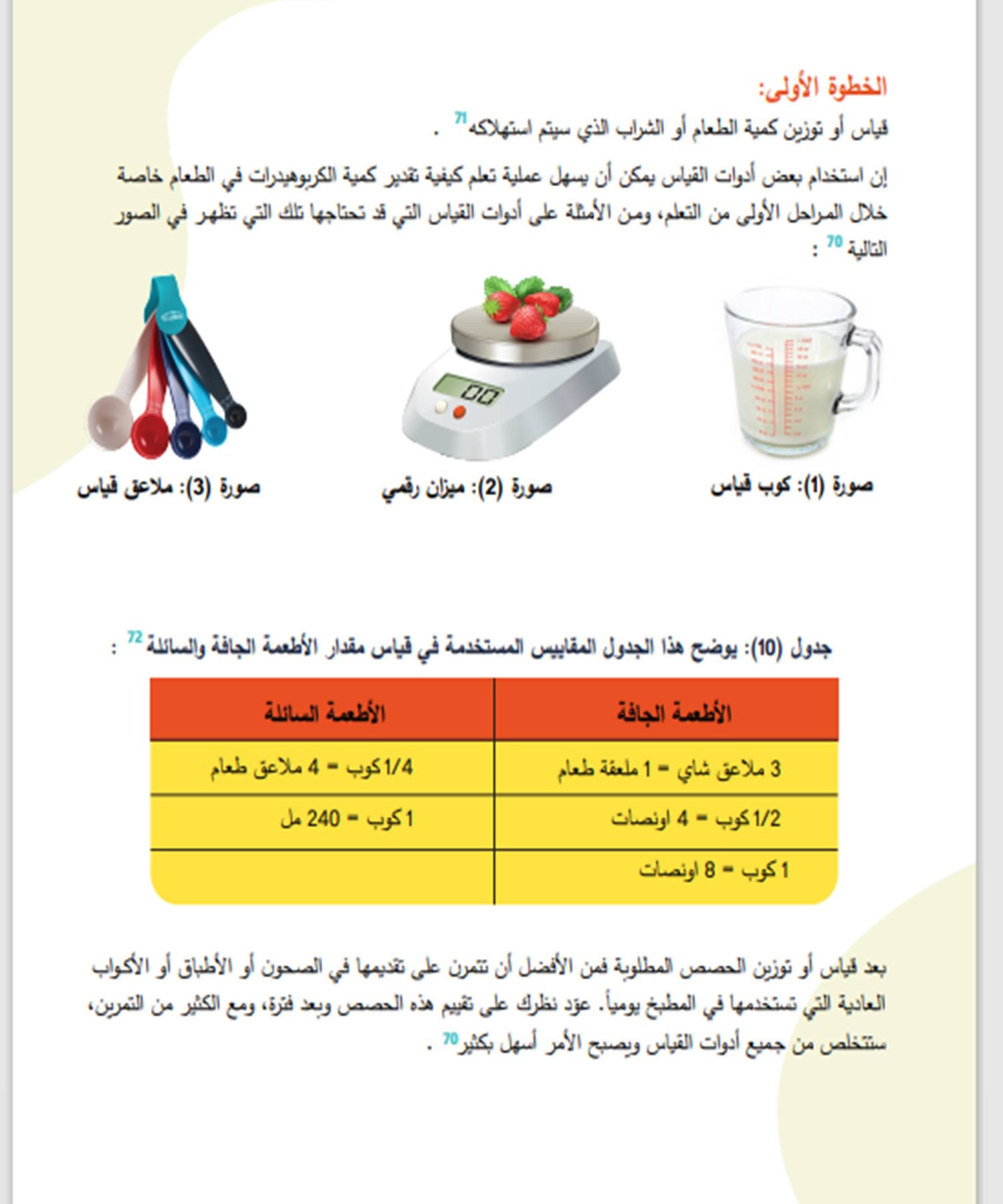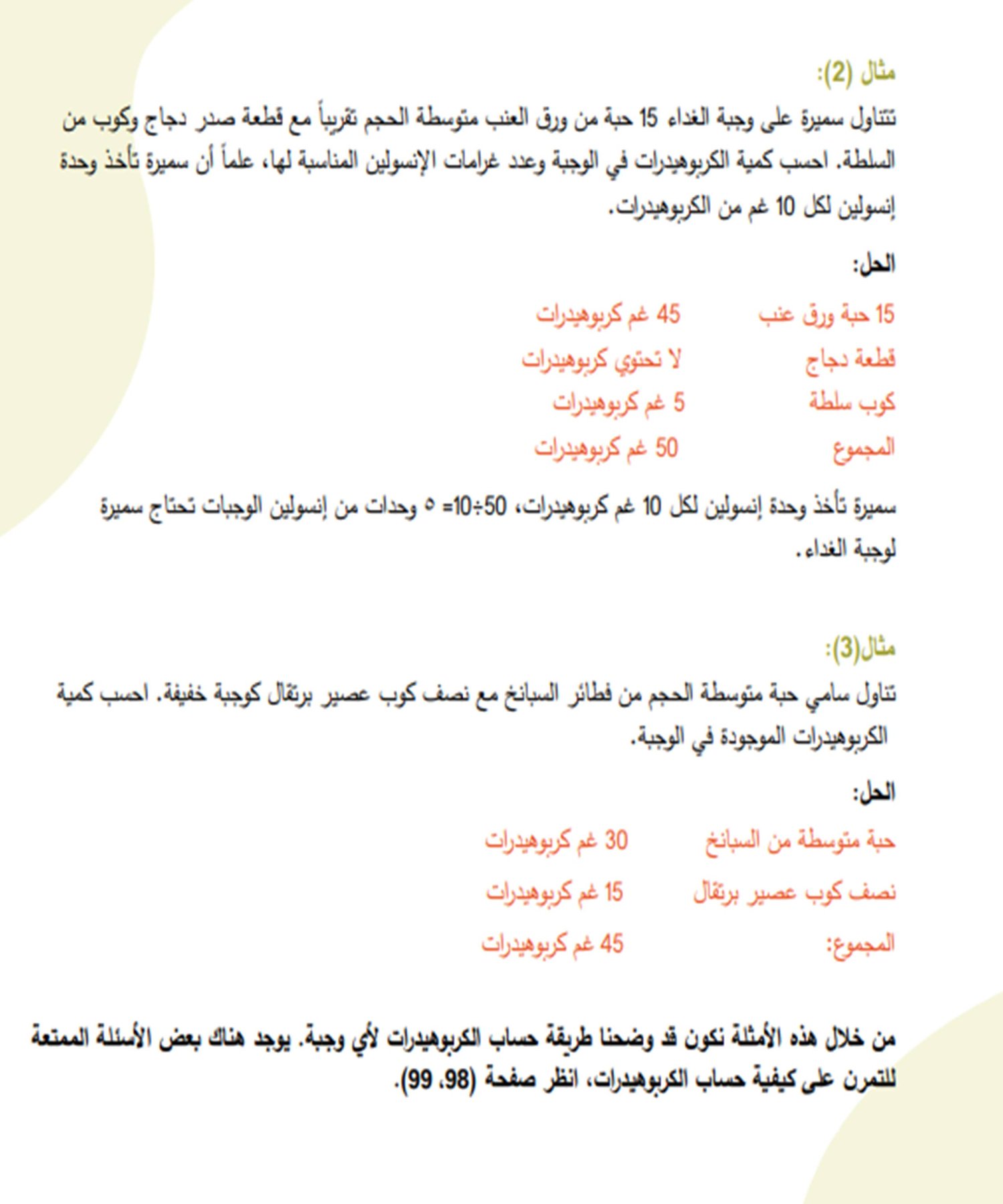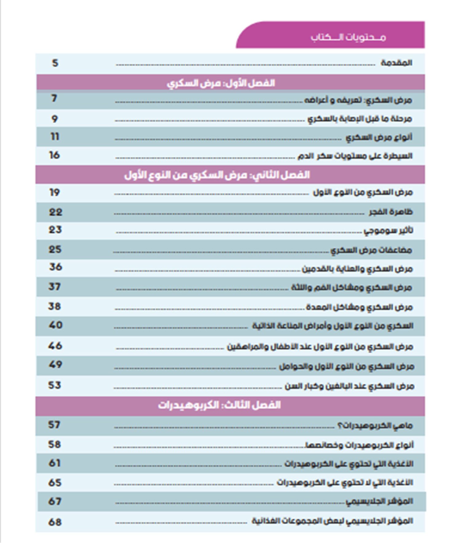 كما و احتوي الكتاب على دليل مصور للمجموعات الغذائية المحتوية على الكاربوهيدرات مع كمياتها و أوزانها و محتواها من الكربوهيدرات حتى تكون دليلا للمستخدمين