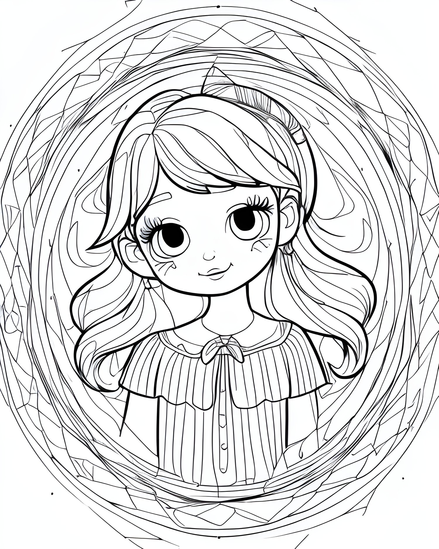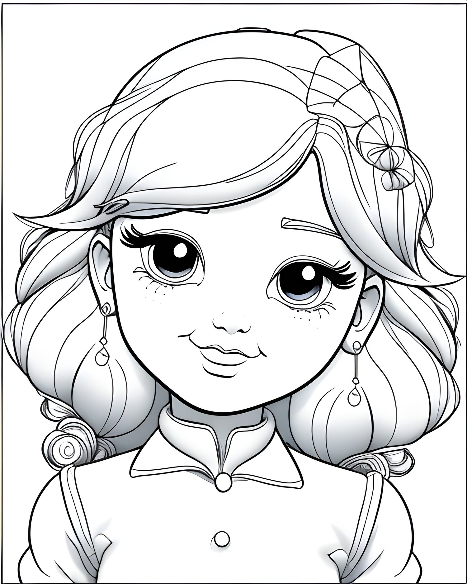 #WhimsicalArt #ChildrensIllustration #DigitalPortraits #ColoringBookStyle #GirlCharacters #BigEyesArt #FantasyPortraits #YouthfulInnocence #CharacterDesign #DecorativeIllustration