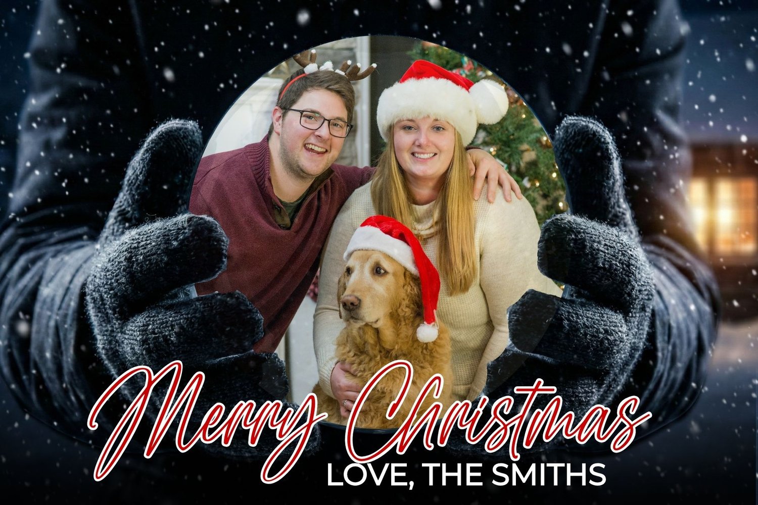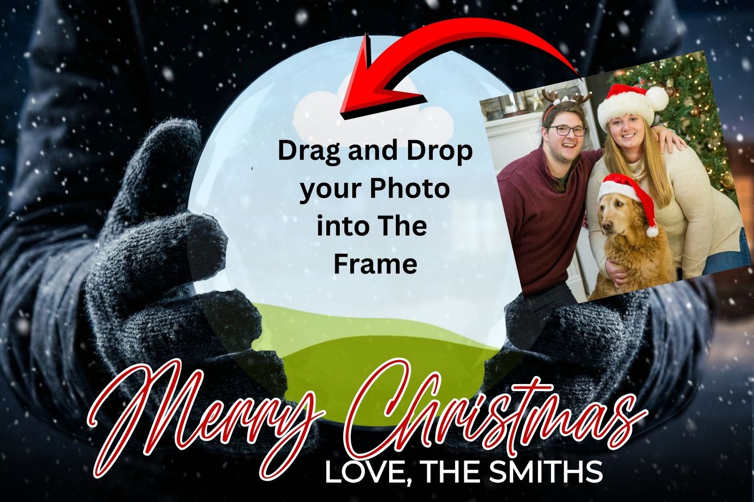 This beautiful Santa Snow Globe design lets you easily add your own photo, making it the perfect personalized holiday card for family, friends, customers, or clients.