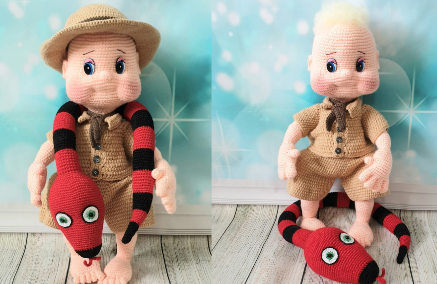 We would like to introduce to you 'Safari Charlie' he's made in basic stitches and rounds, stands at approximately 14" tall and is written in US Terminology, a list of materials is listed in the pattern and links as to how and where to purchase the cartoon safety is at the back of the pattern,