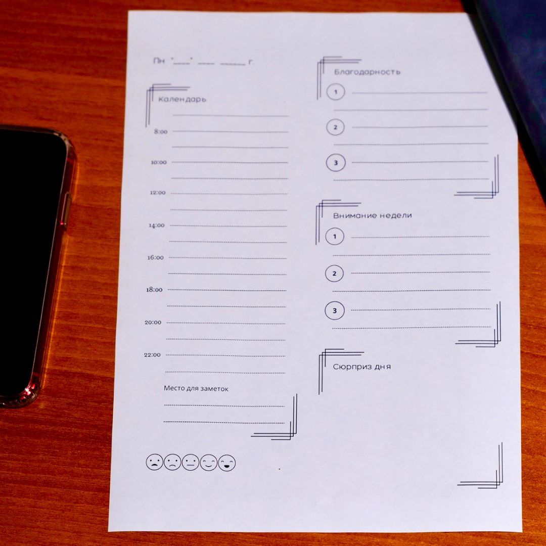 Шаблон для планировки дня