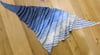 This shawl uses linen stitch to blend three colours into each other, to obtain a gradient-like effect. A simple lace and stripe detail forms the end of the shawl. Starting from just a few stitches, the shawl increases into a long asymmetrical triangle shape that is easy to wear.