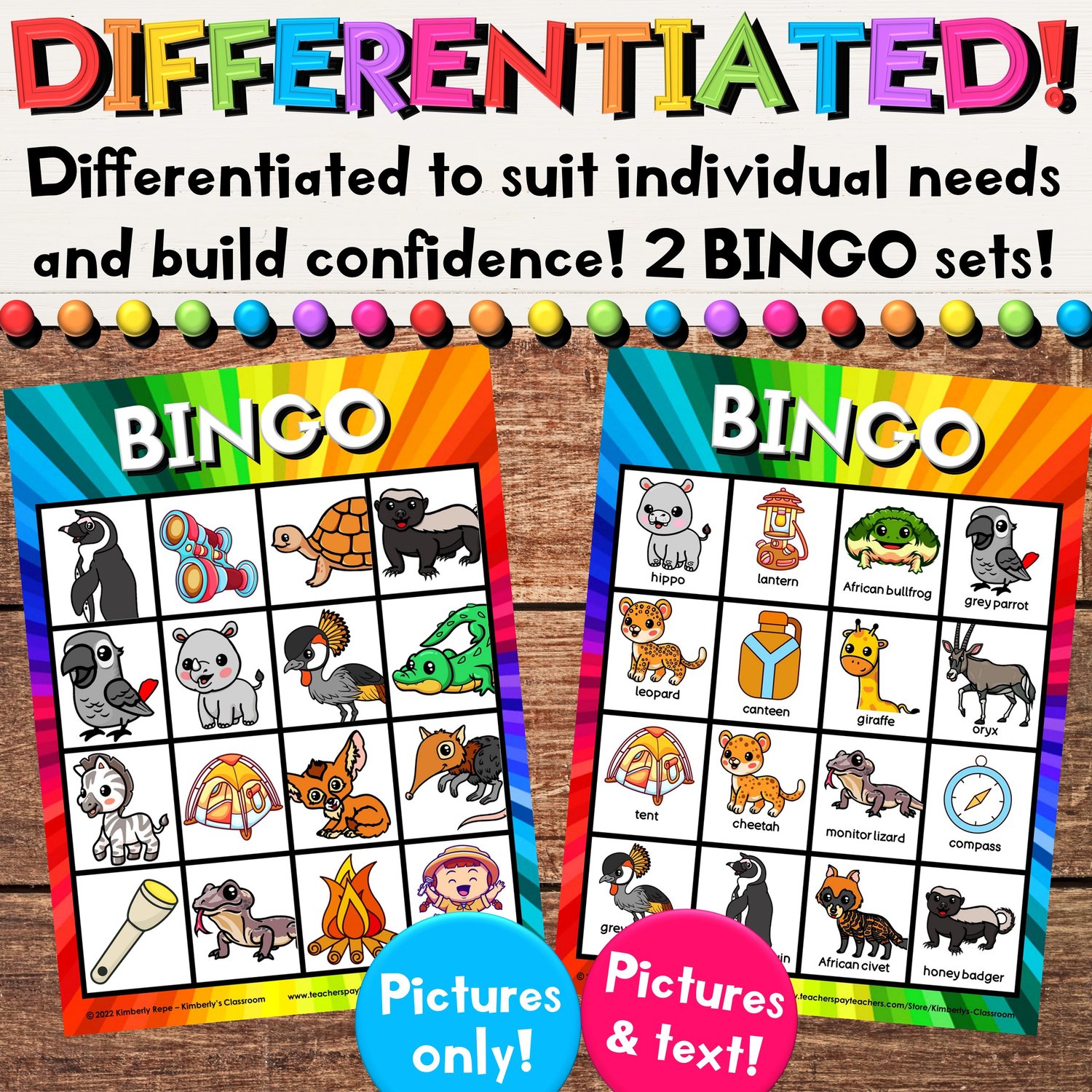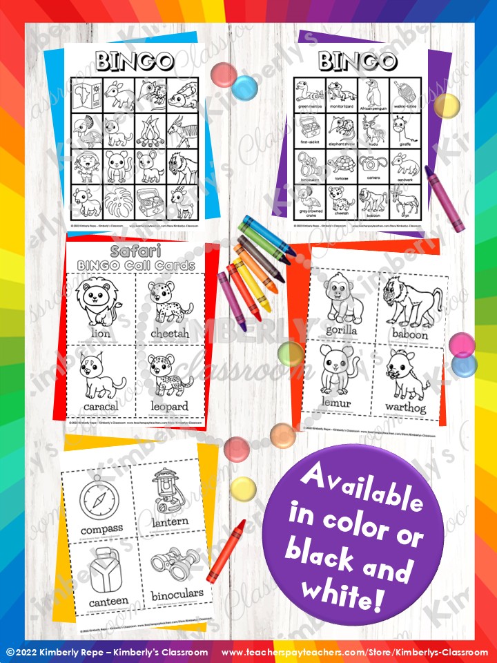 ❤️These differentiated, printable, low prep, safari bingo games come with 40 different African animals and are the perfect way to help your students learn, practice, or review animal vocabulary words!