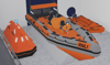 - B class lifeboat (training livery), D class lifeboat, survival raft