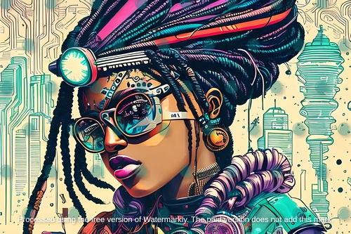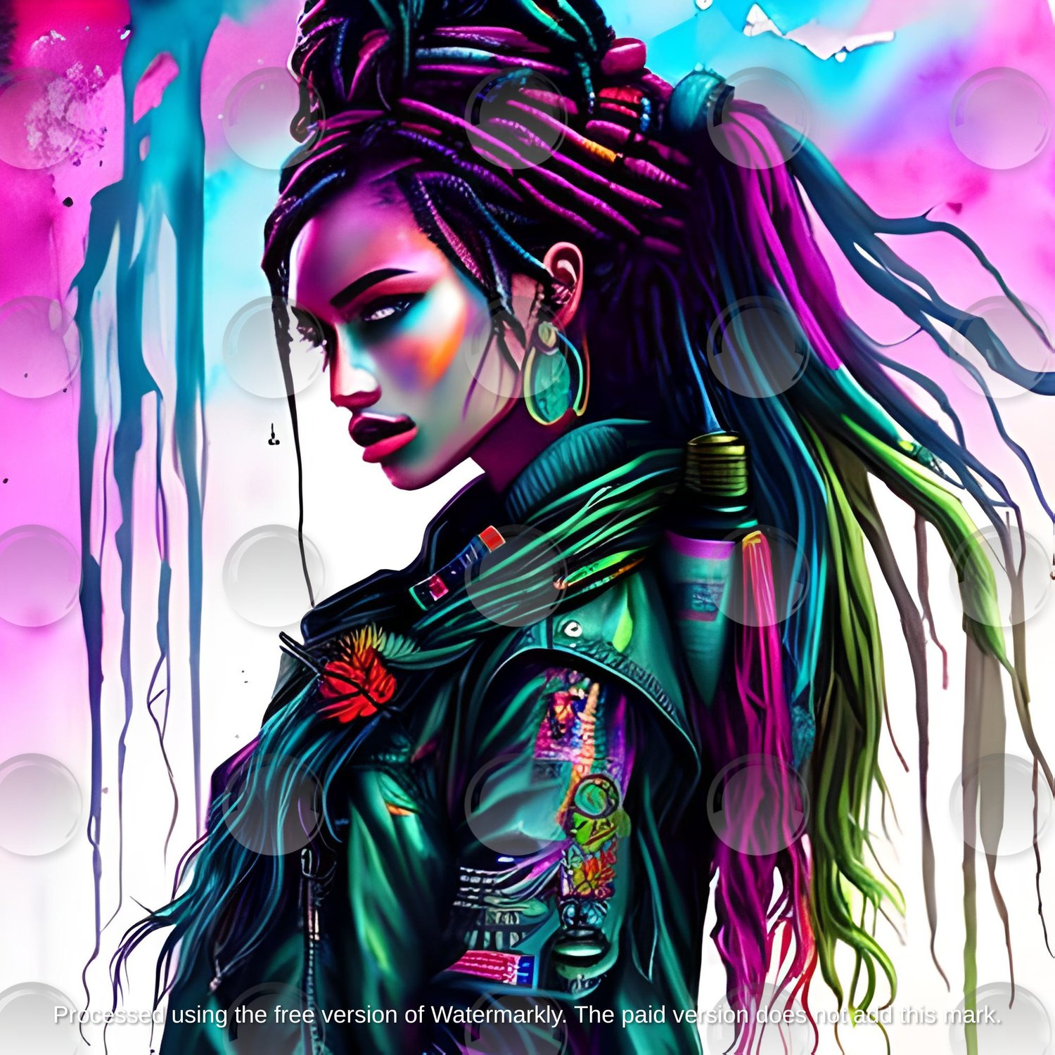 CyberPunk Girl Trudi, has long hair and lots of attitude. Great for apparel, notebooks, bags, posters, etc.