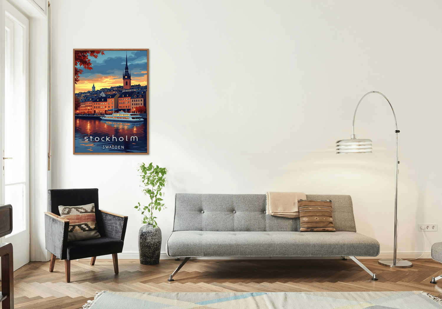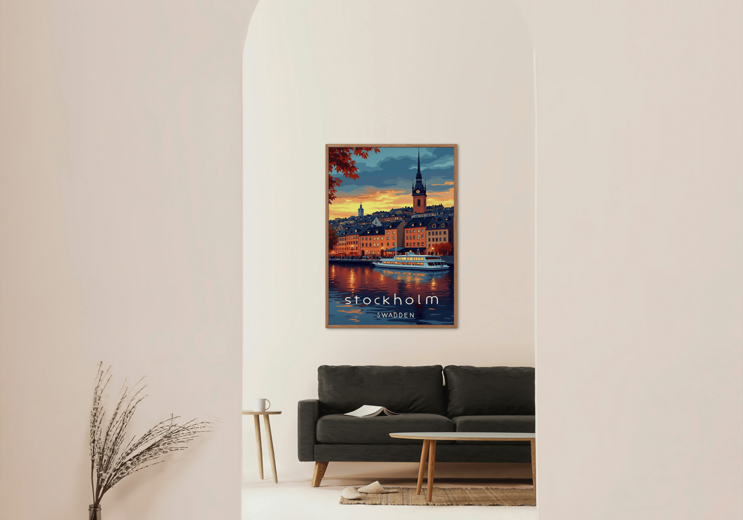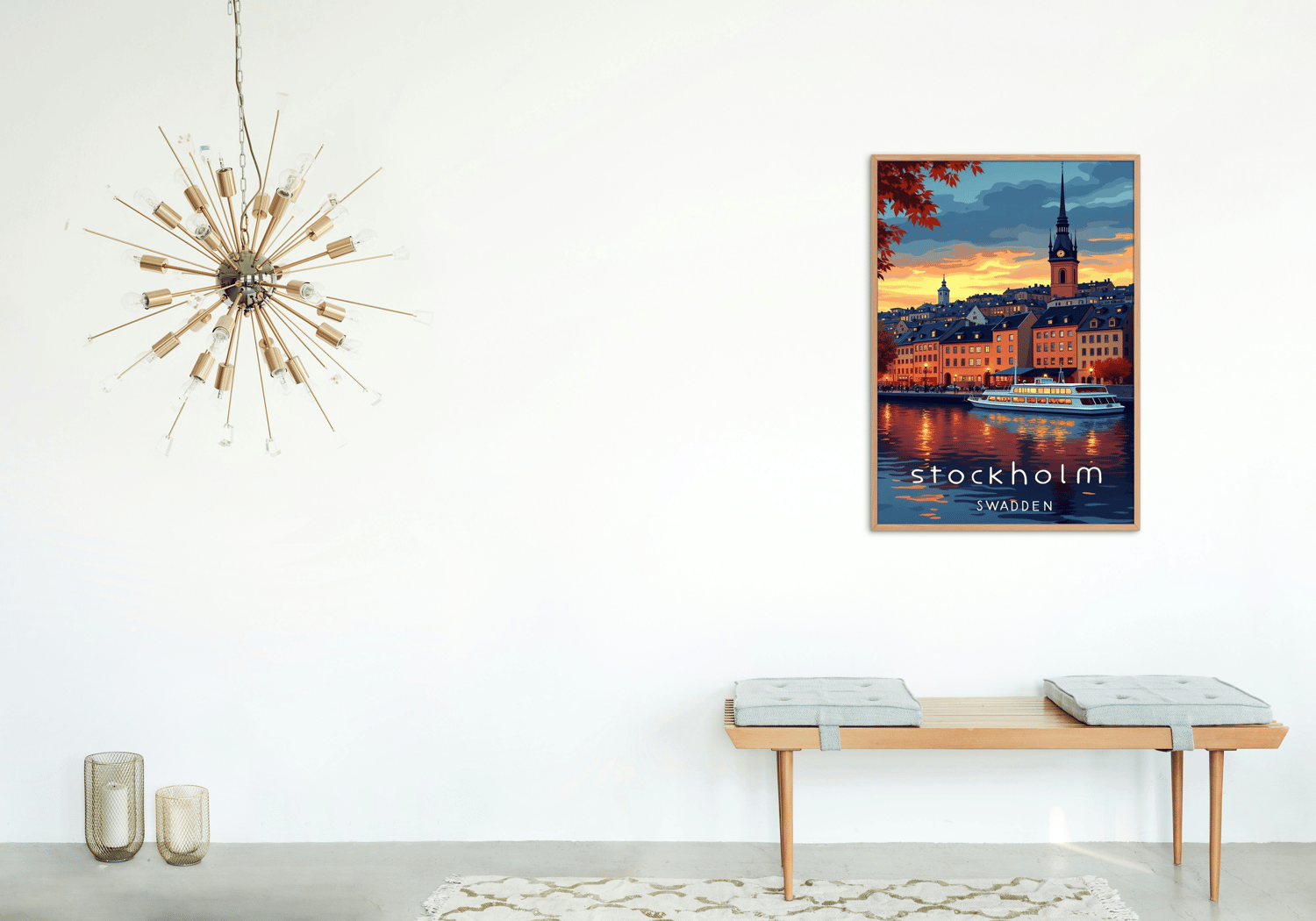 Apportez une ambiance scandinave apaisante à votre intérieur avec cette affiche murale artistique de la ville de Stockholm.