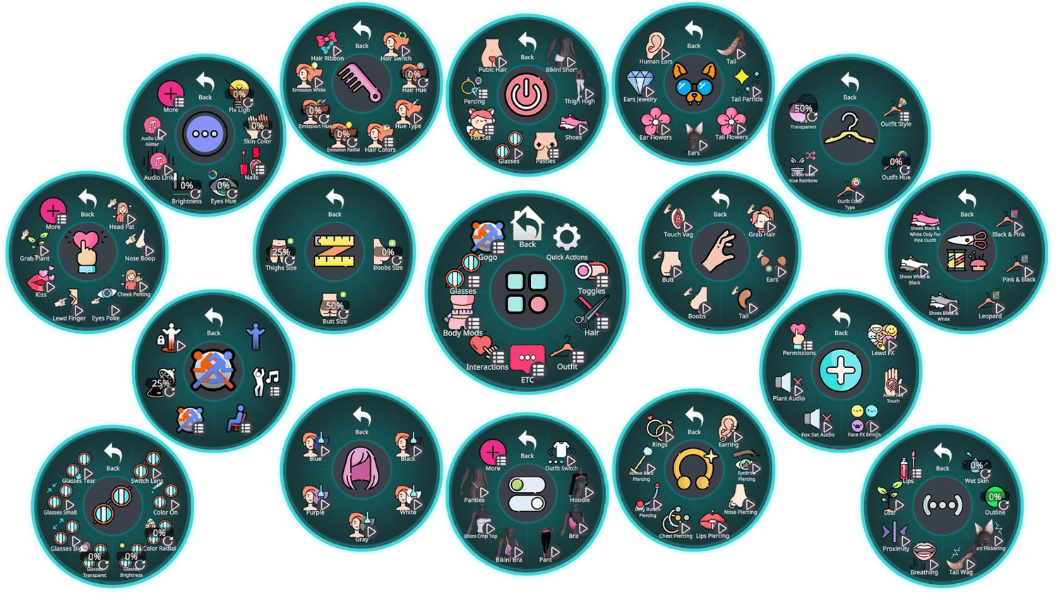 - (Dissolve Toggles) Yoga Crop Top Hoodie, Yoga Bra, Yoga Pants. (Quick Switch Outfit Toggle) Bra, Shorts, Panties, Thigh-highs, Shoes, Fox Tail, Fox Ears, Parts Cover, Piercings (Earrings, Nose Piercing, Lip Piercing, Chest Piercing, Upper Back Piercing, Eyebrow Piercing, Belly Button Piercing, Rings).