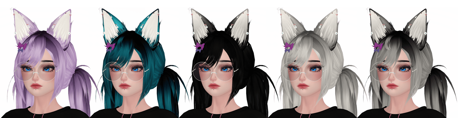 - AudioLink on the hair, fox ears, and tail, Model outline and glitter on the outfit color