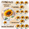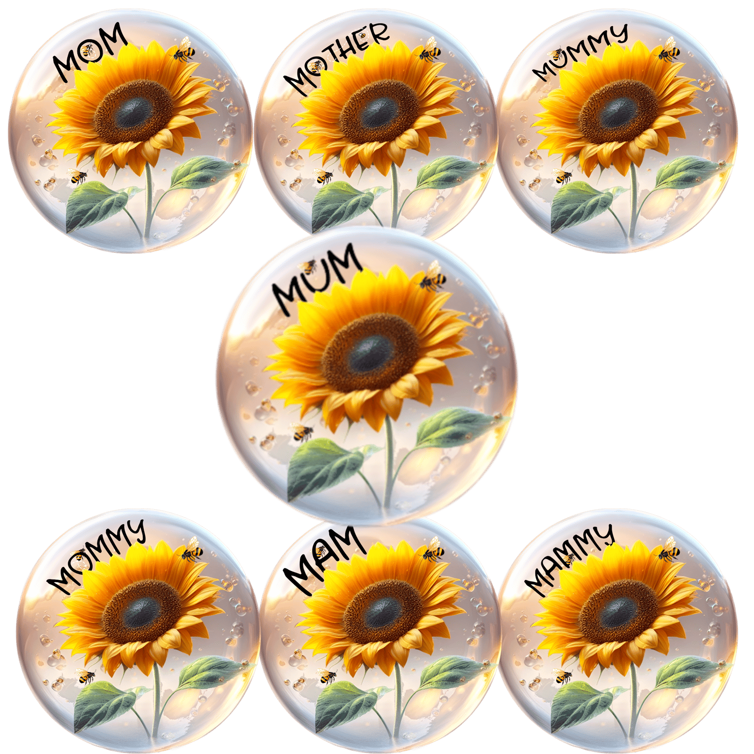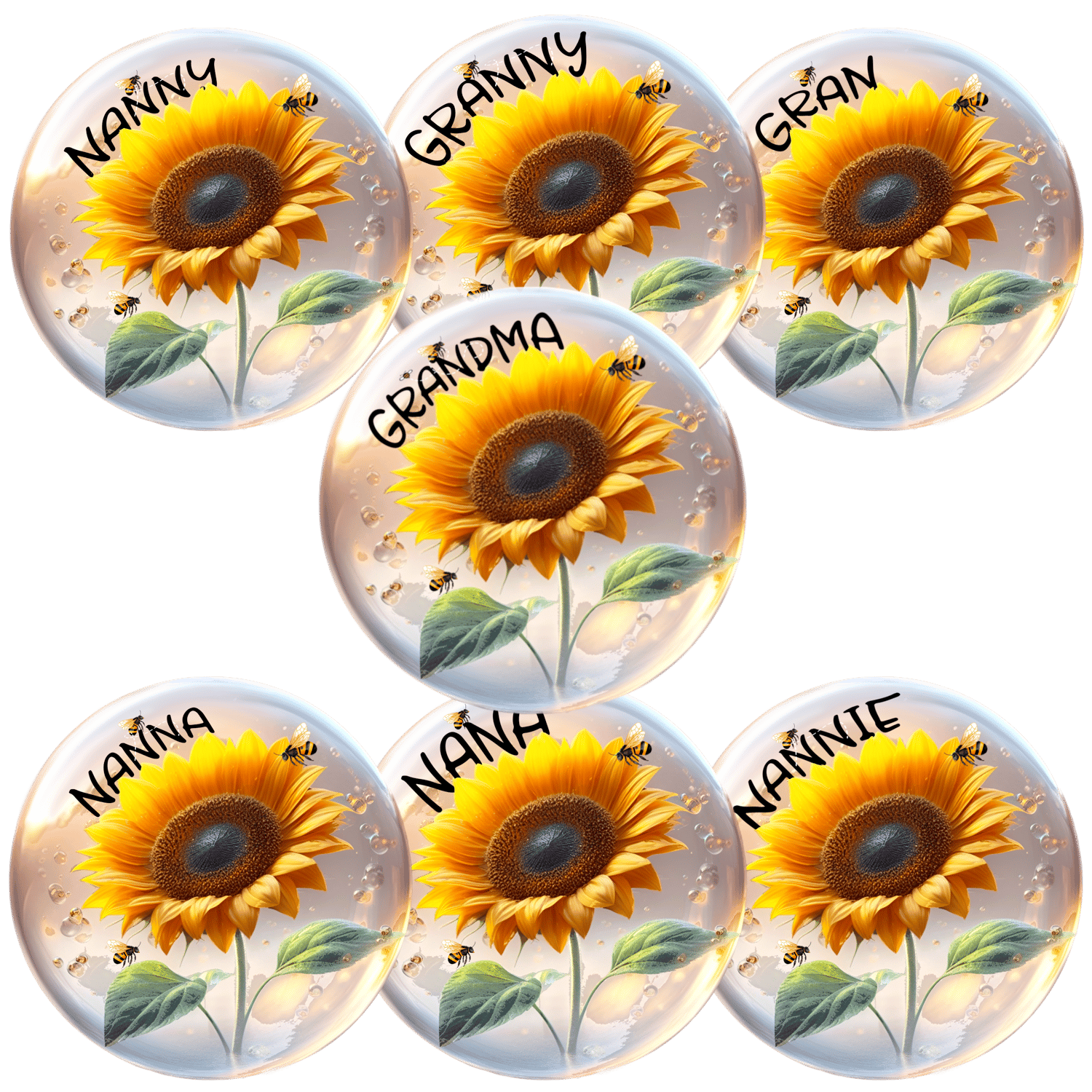Sunflower in a glass bubble, for Grandma, Mum etc, 7 variations for mothers and grandmothers plus blank for you to add your own variation