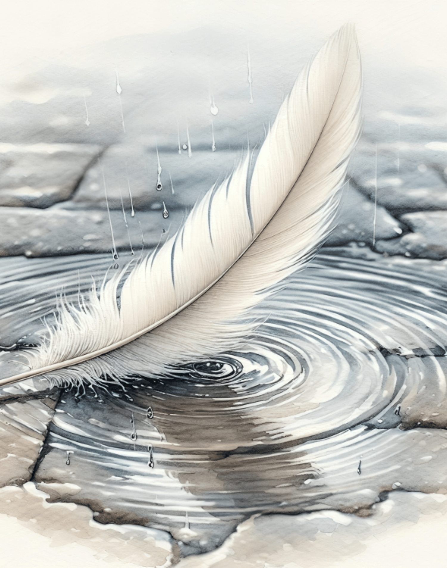 Monsoon Beauty, Rain Painting, Calm Mind Painting, Mindfulness, Serene Art, Relaxation Art Cool Street Art, Single Feather on Street Water Art, Feather Art, Serene Art, Street Art, Water Wave Painting, Feather Dropping Water Painting, Small Effort paintin