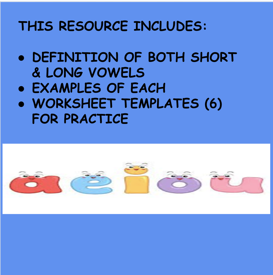 SHORT/LONG VOWELS: REVIEW & PRACTICE WORKSHEETS - K/1