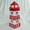 📌 Pour ce projet j’ai utilisé 6 feuilles A3 blanches 300g pour les côtés du phare, 2 feuilles A3 rouges 300g pour le haut, 1 feuille A3 noire 300g pour la base et 1 feuille 24x32 270g blanche pour fermer le haut du phare, 12 feuilles 30x30 à motifs pour les boites, 2 feuilles 30x30 à motifs pour les couvercles, 4 feuilles 30x30 à motifs pour les décours des 6 murs, 1/2 feuille A4 miroir pour les nombre rouges et une 1/2 feuille A4 pailletée pour les nombres blanc.