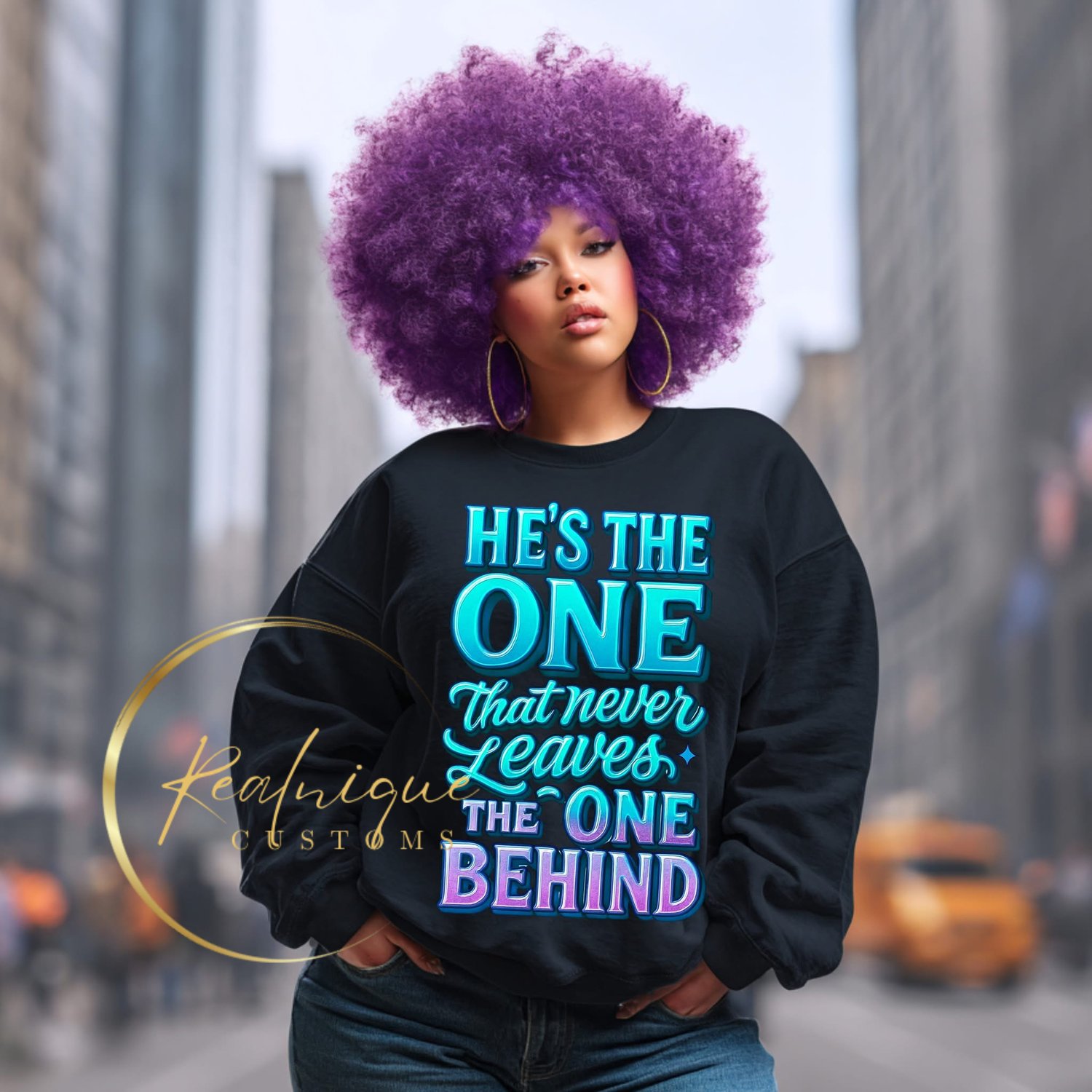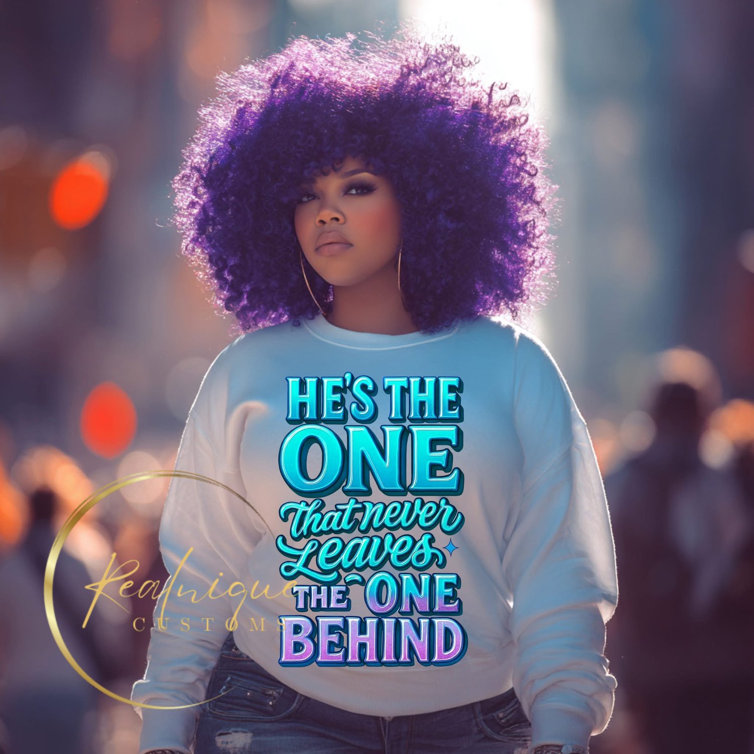Inspire faith and spread the Word with this bold and uplifting “He’s the One That Never Leaves the One Behind” digital design. Perfect for DTF and sublimation printing, this high-resolution PNG is ideal for shirts, hoodies, tote bags, and more. With vibrant typography and a modern Christian message, this design makes a heartfelt statement of God’s unwavering love.