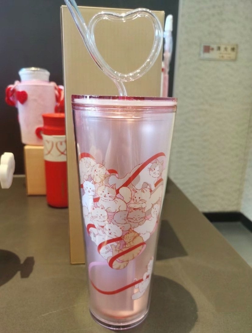 2024 Starbucks China Valentine's Feline in Love Series 24oz Heart-shaped-straw Tumbler