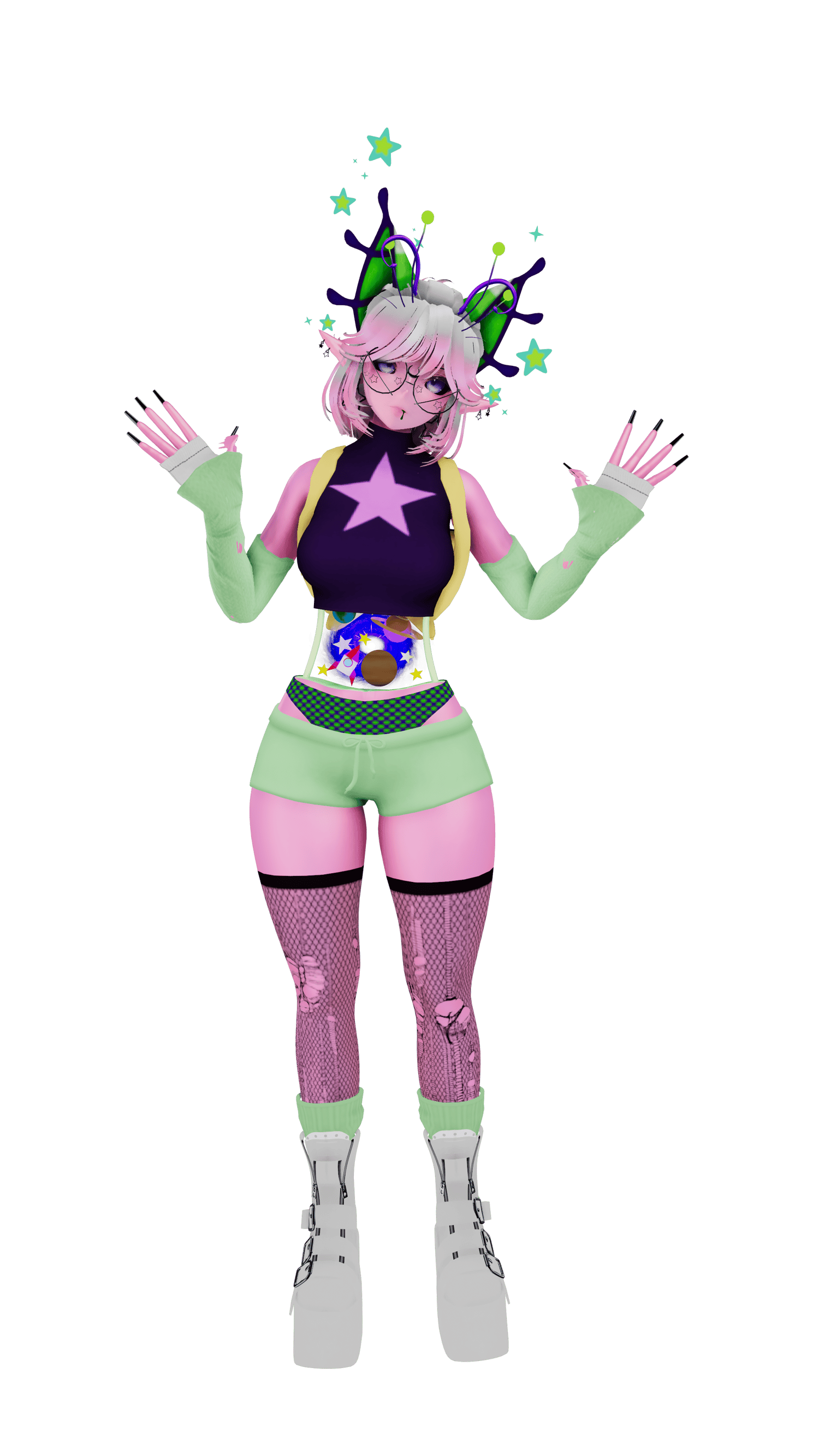 Head base / Body base / Elf ears / Head Face Tracking Add-On / Short Hair / Space Buns / Bubble Braids / Glasses / Alien Cat Set / Antennae / Nose Chain / Drool / PJ Set / Bikini Bottoms / Tutu / Shorts / Mini Skirt / Star Sweatpants / Star Top / Jacket / Arm Warmers / Leg Warmers / Hand Warmers / Star Sneakers / Boots / Tights / Star Belt / Saturn Necklace / Neck Chains / Nails / Rings / Galaxy Particle / Star Particle / Star Backpack / Face Tattoo / Planet Flow Toy / Fidget Toy / Lava Lamp Shader / Avatar Dynamics / GoGo Loco