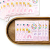 A 4" x 6 " sticker sheet of quilty designs based on the patterns of Megan Collins Quilt Design. The sticker sheet includes 5 die cut stickers. The stickers are outdoor durable and have a matte lamination that gives them a soft non-glare finish.