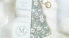 Le fond vert sauge est ponctué de délicates fleurs blanches, créant une ambiance douce et végétale.