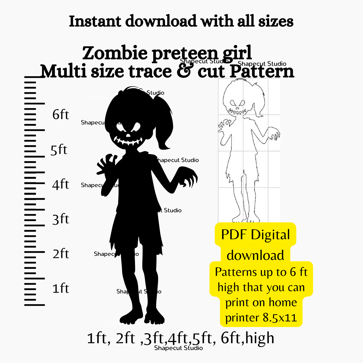 Halloween Zombie silhouette pdf template, silhouette Witch on a broom, 1ft 2ft 3ft 4ft, 5ft, 6ft 7ft 8ft silhouette Template stencil pattern, cemetery scene trace & cut pattern, Halloween yard art, print, trace and cut Décor, Digital Downloa