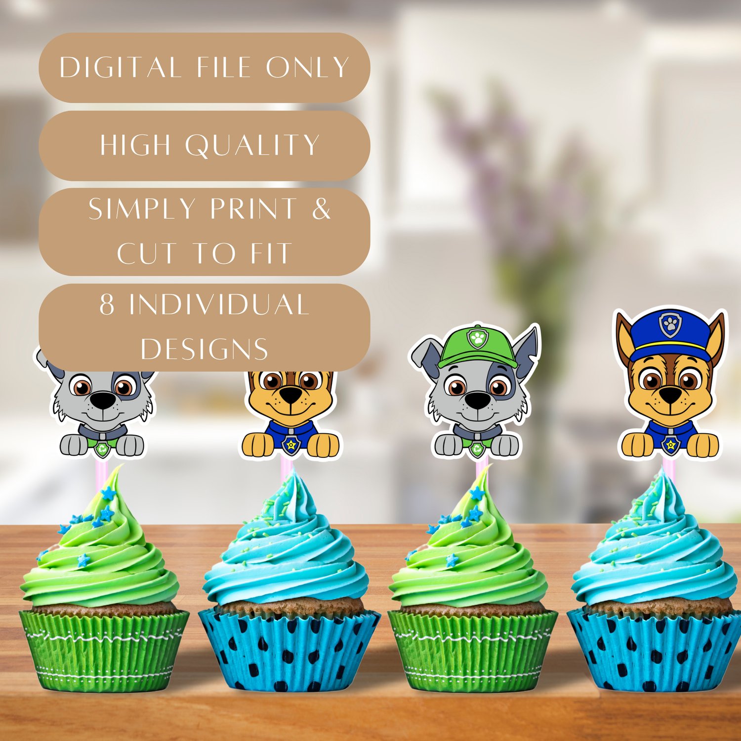 - High-resolution JPG file with multiple Paw Patrol character toppers