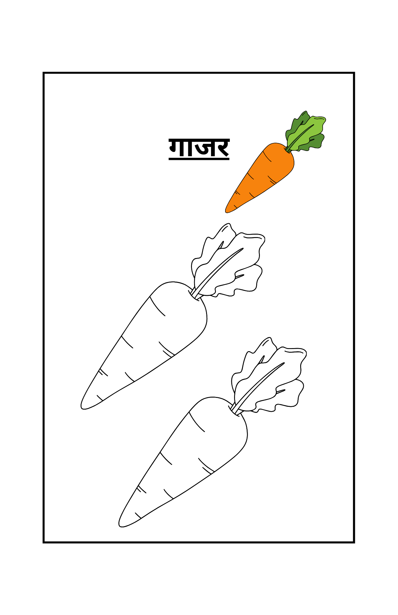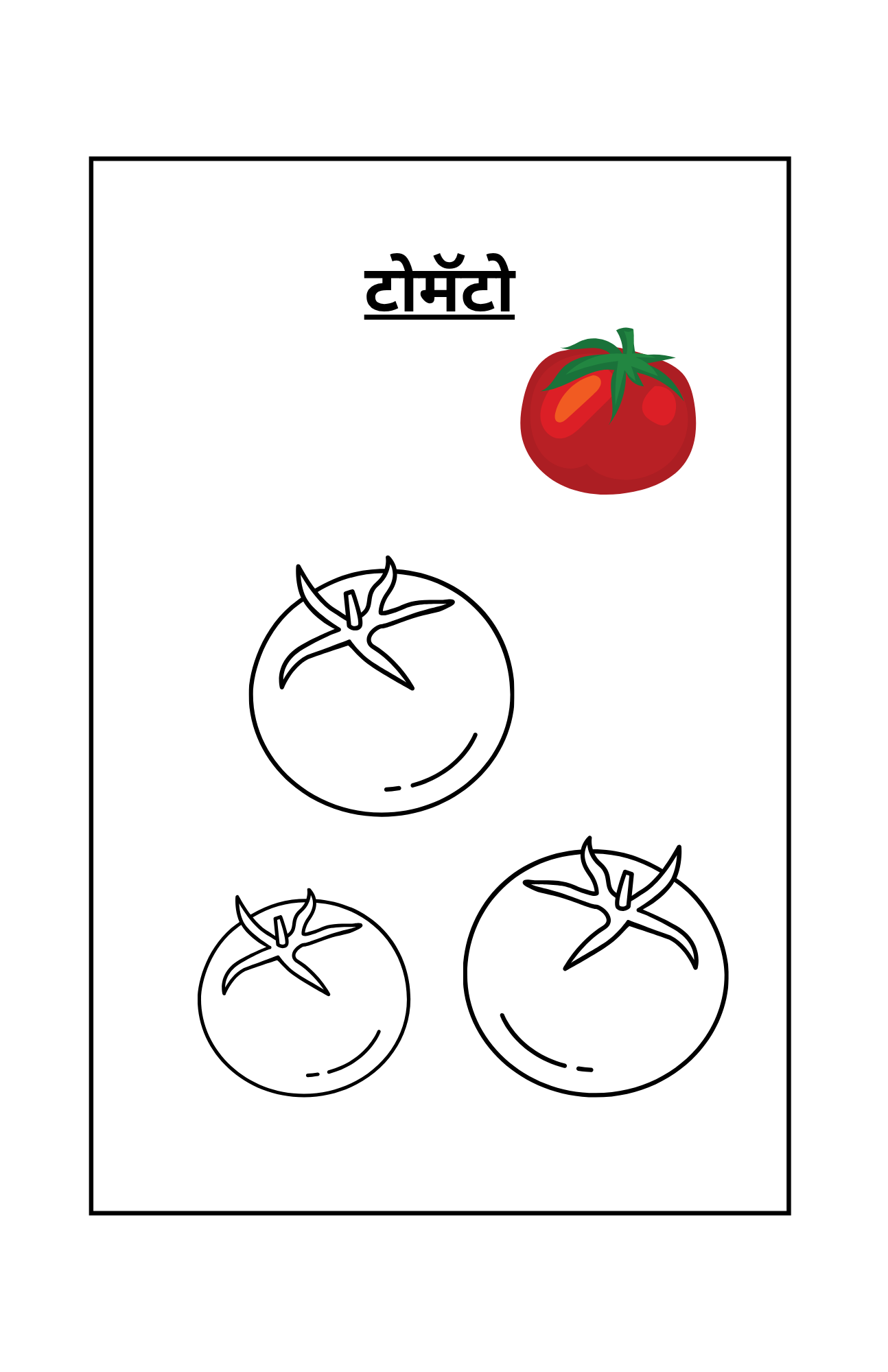 This fun and educational coloring book helps children learn vegetable names in Marathi (मराठी) while coloring bright, simple pictures. Each page includes a large vegetable illustration with its Marathi name for easy recognition and learning. Perfect for preschoolers and early learners to build vocabulary, creativity, and confidence! 🌿